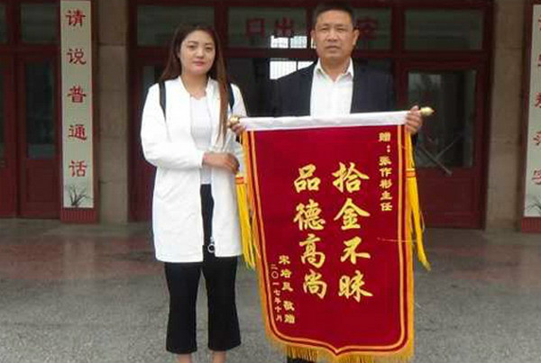 拾金不昧是中华民族的传统美德,更是一个人良好道德风尚和崇高社会责任感的具体体现。2017年10月11日晚6点多钟,南旺镇第二中学总务主任张作彬老师在结束了一天的繁杂工作后,陪同妻子出来散步,当行至汶上县牛村大街路口时,发现一个鼓鼓囊囊的女式钱包,他打开一看,里面有厚厚的一叠人民币、身份证、幼儿接送卡、银行卡若干,他第一时间寻找失主,多方打探,经过一天多的努力最终通过派出所的民警同志联系到了失主刘女士。