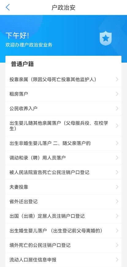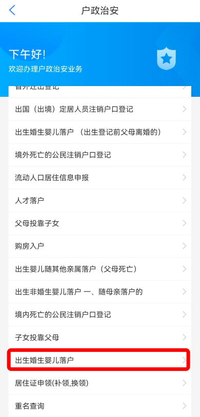 2.在普通户籍中找到“出生婚生婴儿落户”,点击进入。