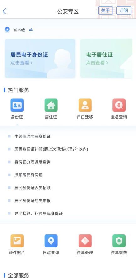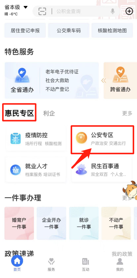 户口迁移、违章罚款缴纳、护照补发......各种公安服务,与我们的生活密切相连。过去,办不同的业务需要在不同警种的办事窗口多头跑动,既耗时又耗力。现在,只需打开“爱山东”政务服务平台就能办! “爱山东”整合户籍、证照、驾管、出入境等常用服务,推出公安服务专区,打造全天候的“掌上派出所”,实现群众从“窗口办”到“指尖办”,提升群众办事效率。 打开并登录“爱山东”APP,下滑至【惠民专区】,点击【公安专区】,即可进入。