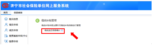 为贯彻落实《中共山东省委组织部山东省人力资源和社会保障厅等16部门关于优化调整稳就业政策的通知》(鲁人社发〔2023〕5号)和《山东省人力资源和社会保障厅关于做好近期失业保险稳就业政策落实有关工作的通知》(鲁人社函〔2023〕70号)文件精神,我县2023年继续实施失业保险稳岗返还政策。现就有关事项公告如下: 一、申领条件 申请稳岗返还的企业应同时具备以下条件: (一)生产经营活动符合国家及所在区域产业结构调整和环保政策; (二)参加失业保险并足额缴纳失业保险费12个月以上; (三)2022年度未裁员或裁员率不高于5.5%,30人(含)以下的参保企业,裁员率不高于参保职工总数20%; (四)“僵尸企业”、严重失信企业不返还失业保险费。 二、返还标准 大型企业按企业及其职工上年度实际缴纳失业保险费的30%返还,中小微企业按60%返还。社会团体、基金会、社会服务机构、律师事务所、会计师事务所、以单位形式参保的个体工商户参照中小微企业政策实施。上年度实际缴纳失业保险费不含补缴的历年欠费和滞纳金。对申请缓缴失业保险费的企业,在补足失业保险费后,可申请稳岗返还。 三、资金用途 稳岗返还资金主要用于职工生活补助、缴纳社会保险费、转岗培训、技能提升培训等四项稳定就业岗位相关支出。必须坚持专款专用,严格财务管理,留存票据等资料备查。 四、申报材料 (一)《稳岗返还一次性告知书》签字、盖单位公章(见附件1模板); (二)《稳岗返还承诺书》原件法人签字、盖单位公章(见附件2模板); (三)稳岗补贴使用说明(仅限非首次申报的企业提供,新申报企业无需提供,见附件3模板); (四)最近年度上次收到稳岗补贴支出明细账或记账凭证复印件盖章(仅限非首次申报的企业提供,新申报企业无需提供); (五)2022年12月份工资发放花名册及银行发放证明; (六)《稳岗返还申请表》(网上确认填报信息时自动生成,可直接打印) 以上所需申报材料以图片或PDF格式上传到外网社保系统“稳岗返还信息确认”模块中,不需提供纸质版材料。 五、申报流程 实施“免申即享”经办模式。 (一)免申即享。符合条件的企业登录社保经办服务系统“稳岗补贴管理”模块对银行账户、返还金额等信息进行确认,上传相应材料。人社部门对完成确认的参保单位按规定程序进行审核和公示,对公示无异议的,将及时拨付稳岗返还资金。 (二)对没有对公银行账户的小微企业或个体工商户,可将资金返还至税务提供的其缴纳社会保险费银行账户。 (三)劳务派遣单位截滞留稳岗返还资金清理专项行动中清理存量资金期间,劳务派遣单位暂停享受稳岗返还政策。 六、稳岗补贴信息确认操作说明 (一)外网登录“济宁市社会保险单位网上服务系统”(http://60.211.255.251:8081/hso/logonDialog_114.jsp),点击左侧“稳岗补贴管理”