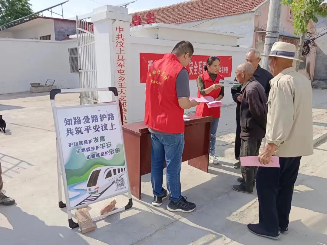 本次宣传活动通过发放宣传单页、张贴宣传海报、悬挂条幅、现场讲解、悬挂警示牌等形式,积极引导辖区内群众自觉学习管理条例、维护铁路安全,杜绝出现破坏铁路安全情况发生。本次活动军屯乡累计共发放《山东省铁路安全管理条例》宣传单页和《铁路护路知识》宣传彩页共计600余份。