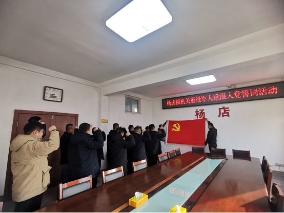 为积极响应《关于春节期间组织退役军人开展重温誓词活动的通知》文件号召,引导和激励广大退役军人进一步增强荣誉感、责任感、使命感;践行入党誓言,永葆军人本色,1月26日,杨店镇组织开展退役军人重温军人誓词活动。