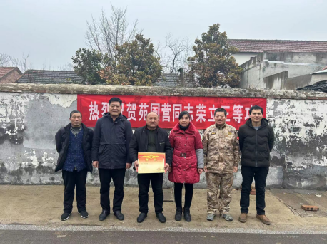 慰问组一行到杨街村现役军人苑国营家中,送上三等功喜报和慰问金,让军人军属共享这份荣耀和喜悦。