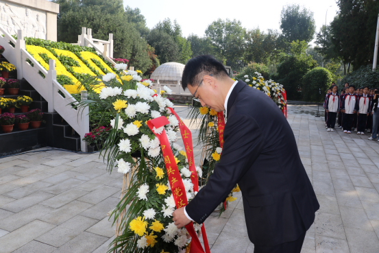 随后,全体人员肃穆静立,行注目礼,县委书记李强迈步上前,仔细整理花篮缎带,表达对烈士的崇高敬意。