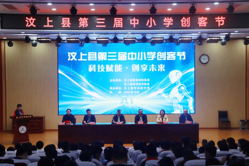 10月18日,汶上县第三届中小学创客节在建华实验中学成功举行。本届创客节以“科技赋能・创享未来”为主题,旨在通过“以赛促学、以展赋能”的形式,为全县中小学生搭建一个学习交流、实践展示和文化体验的综合平台,进一步激发学生的创新精神和实践能力,全面培育学生的科学素养、创新思维及实践应用能力。县教体局党组书记、局长胡继广,县科协党组书记、主席辛衍青出席活动。来自全县各中小学的师生约400余人参加此次活动。