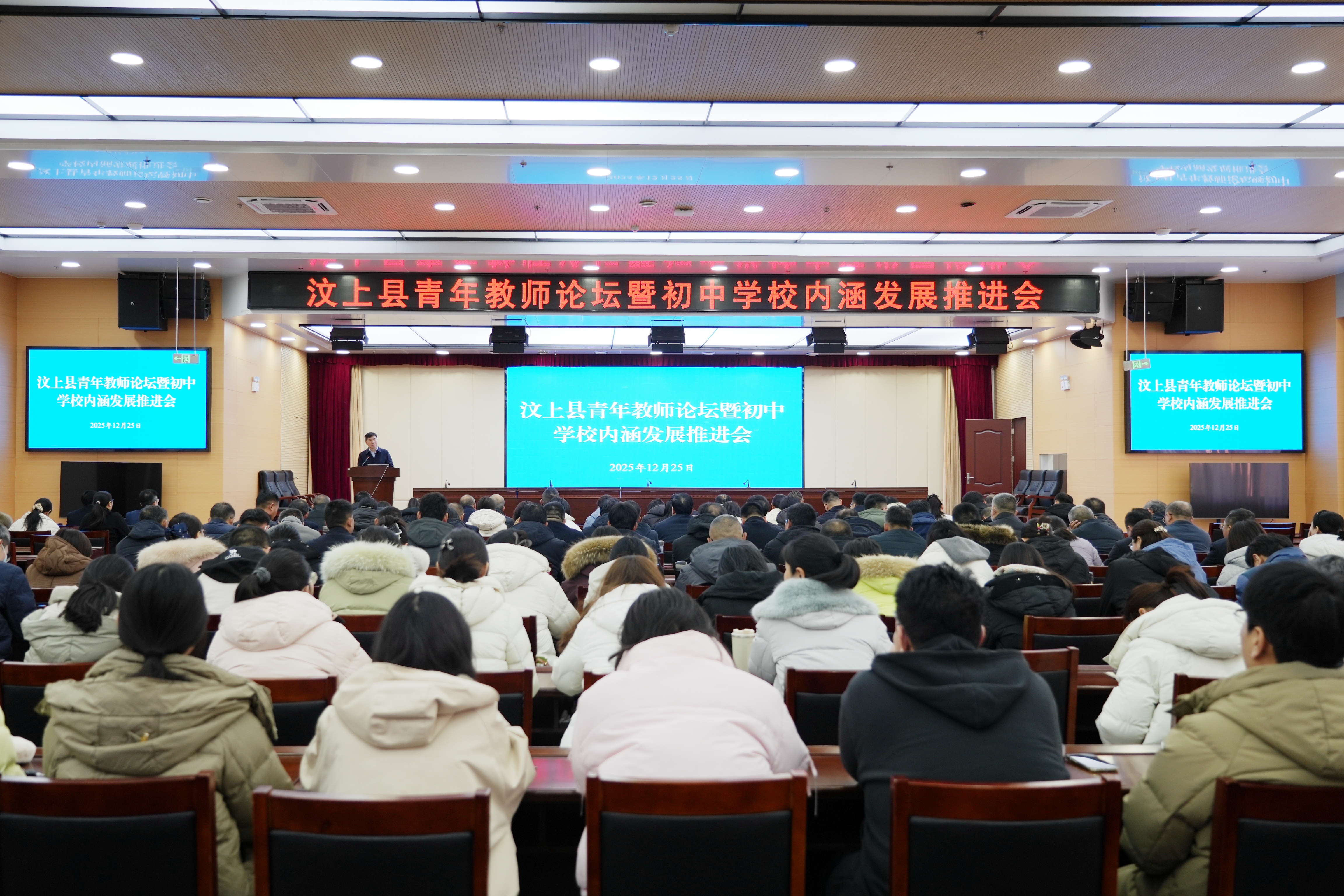 为切实转化青年教师赴青岛大学教育集团跟岗培训成果,深入推动初中教育提质增效,12月25日,汶上县青年教师论坛暨初中学校内涵发展推进会在县教体局举办。县委教育工委常务副书记,县教体局党组书记、局长胡继广出席会议并讲话。 会上,来自五所学校的六位跟岗教师代表依次发言,结合在青岛大学教育集团的所学所感分享了深刻体会。第一实验中学韦修明副校长以《深耕杏坛担使命 守正创新育新人》为题,借鉴青岛经验,介绍了通过打造“师生发展共同体”、推行“三式课堂”教学改革和构建“五维”评价体系推动学校高质量发展的路径;第二实验中学李启锋副校长围绕《取势青大优教经验,赋能本土教育提质》主题,分享了“寻差距、明方向、重行动”的反思,并从特色校园文化、管理制度完善、教师专业发展和创新人才培养等方面提出了本土化教育发展思路。第五实验中学潘冬瑾老师聚焦教学能力提升,介绍了将德育细化融入课堂、深度使用作文量表以及通过“四层反思法”优化教学设计的实践;第二实验中学冯夫莉老师以教师专业成长为主题,分享了通过精心备课、持续反思、坚持读书写作和观摩多元课堂来实现教学能力提升的路径;第三实验中学张淑贤老师介绍了更新教育理念、探索学科融合与AI赋能课堂、深化团队教研和践行终身学习的教学相长经验;建华中学季元浩老师则分享了从教学到育人的理念升华,提出以“点燃思维、深耕课堂”推动教学改革,展现了青年教师务实创新的奋斗姿态。 县教体局党组成员、县教育保障服务中心主任刘庆涛分别对教师代表发言进行了点评,并对全体教师提出了读一本教育专著、写一篇教育论文、上一堂教学展示课、开展一次巡回讲座、做一份发展规划书、开展一次同课异构活动等“六个一”工作要求。同时就加强教师队伍建设、规范学校办学、深化教科研工作进行全面部署。 胡继广在总结讲话中指出,青年教师是汶上教育的未来和希望,目前全县40岁以下青年教师占比超过50%,建设好这支生力军意义重大。胡继广勉励青年教师要守护教育良心、做好学生引路人、争当教学改革实干家。 胡继广要求,各学校要坚守政策底线,规范办学行为不越界。聚焦教育教学,规范育人过程不打折。筑牢安全防线,规范校园管理不含糊。要锚定核心目标,把牢教学质量生命线;激活科研动能,筑牢质量提升动力源;健全保障机制,凝聚提质增效合力。 胡继广希望,全体教育工作者要凝心聚力,将先进经验转化为教学实践,切实推动汶上初中教育高质量发展,让每一个孩子都能在我们的校园里阳光、自信、健康的成长! 局基教科、电教站、仪器站负责人、县教研室全体教研员、各初中学校校长及业务校长、赴青岛跟岗培训全体教师参加了本次活动。 撰稿:王 博 初审:刘庆涛 终审:胡继广 |