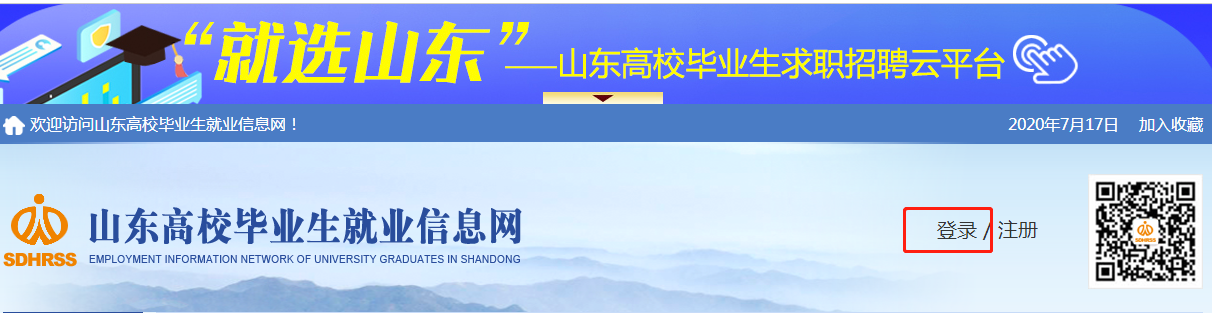 1、通过网页登录山东高校毕业生就业信息网(网址www.sdgxbys.cn),点击右上角“登录”,进入到“登录页面”;