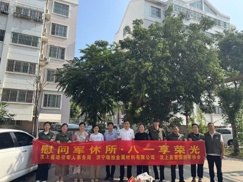 7月31日,汶上县军休所联合济宁瑞旭金属材料有限公司、汶上县爱国拥军协会共同开展庆八一走访慰问活动,为军休干部送去慰问品和节日祝福。