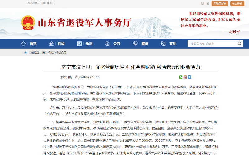 “感谢党和政府的好政策,为俺的企业带来了及时雨”,创办电商公司的退役军人何树青的深情感慨。随着业务规模不断扩大,公司出现资金周转困难问题,得知退役军人创业扶持政策后,联系到汶上县退役军人事务局,通过绿色通道,仅用20天时间,成功获得450万元的贴息贷款,有效缓解了资金压力。 近年来,济宁市汶上县始终将优化营商环境作为推动退役军人创业、激发市场主体活力的重要抓手,为退役军人创业搭建起“护航平台”,努力当好退役军人创业路上的"后勤保障兵"。 一、构建多层次政策支持体系,打通创业融资瓶颈。一是设立专项贷款基金,提供创业资金支持。依托省专项基金,针对退役军人创业"融资难、融资贵"问题,对申请创业贷款的退役军人给予贴息支持。截至目前,全县共发放退役军人创业贷款252人,发放5763万元,贴息144人,贴息金额227.22万元。二是建立创业带动就业奖励机制,鼓励扩大就业规模。对吸纳退役军人就业的初创小微企业,汶上县按照政策依据给予吸纳1名退役军人给予3000元、5000元奖励。济宁虎威劳务派遣有限公司和汶上县中都技工学校有限公司积极吸纳63名退役军人就业,获得创业带动就业奖励31.1万元。三是强化政策宣传推广,确保红利精准触达。通过“线上+线下”双渠道开展政策宣传,线上利用政府官网、退役军人微信群推送政策解读短视频、图文指南;线下组织“政策进社区、进集市、进企业”活动,现场讲解贷款申请、贴息申领、奖励申报等流程。累计开展宣传活动60余场,发放政策手册5000余册,覆盖退役军人1.2万余人次,政策知晓率提升至95%以上。 二、优化贷款办理服务流程,提高创业扶持效能。一是建立三级联络员制度,实现服务全覆盖。严格落实"军创企业联络员"制度,由县乡村三级退役军人事务部门、创业贷款合作银行组成服务团队,形成村级"周探望"、镇街"月走访"、县级"季联络"工作机制。目前已在15个镇街建立"军创企业"联络台账,走访辖区"军创企业"563次,解决问题困难153次。二是开辟绿色审批通道,压缩办理时限。协调行政审批及人社部门开辟军创企业办理绿色通道,县退役军人服务中心核查信息缩短至0.5日,贷款办理环节,经办银行在7个工作日内完成审核,3个工作日内完成贷款审批发放。三是建立“预审预评”机制,减少补正次数。联合经办银行制定退役军人创业贷款“材料预审清单”,明确申请材料规范、经营资质要求等核心要素,由银行进行初审,对符合条件的优先推送退役军人服务站,对材料不齐全的一次性告知补正事项,让退役军人“只跑一次腿”。 三、打造全方位创业支撑环境,提升创业成功概率。配备专属金融网格员,提供精准对接服务。汶上县创新推行"金融网格员+退役军人"服务模式,农业银行山东汶上南站支行7名员工全部为退役军人,设置金融网格沙盘地图—蓝色代表服务未触达区域,红色代表已服务区域。随着时间推移,服务区域不断扩大,金融“活水”汩汩流向老兵心田。同时积极树立创业典型,发挥示范引领作用,利用短视频、公众号宣传退役军人创业成功典型案例,激励更多退役军人投身返乡创业热潮,逐步实现个人梦想。 编辑:张明慧 初审:毕志浩 终审:王向红 |