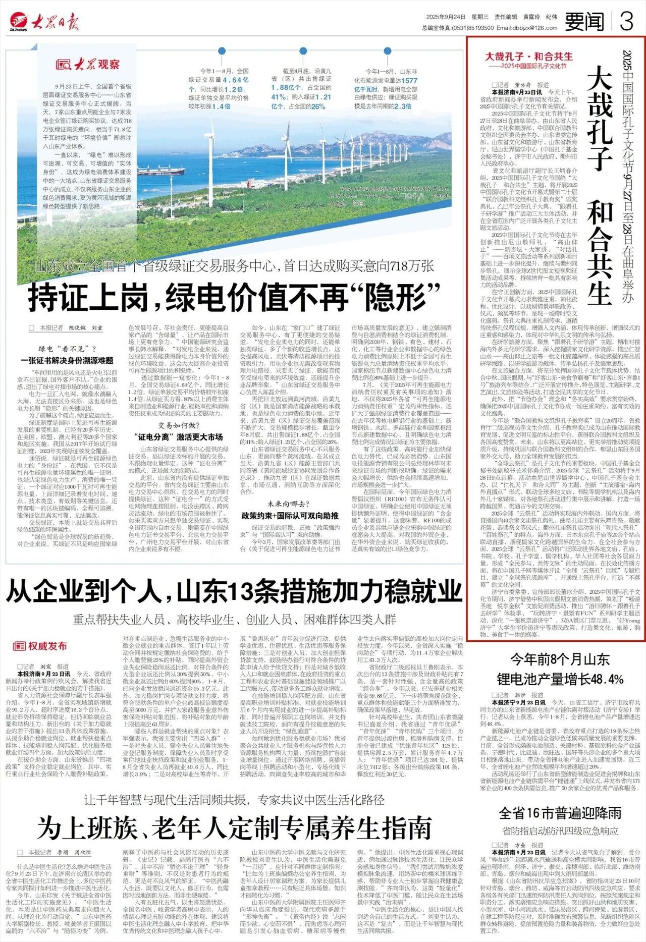 | 9月24日,大众日报03版刊发《大哉孔子 和合共生》,报道2025中国国际孔子文化节将于9月27日至28日在曲阜举办。本届文化节以“大哉孔子 和合共生”为主题,包含开幕式暨孔子教育奖颁奖、乙巳年公祭孔子大典、“跟着孔子研学游”推广活动三大主体活动,并创新呈现全球“云祭孔”等环节。活动注重守正创新与文旅融合,将结合中秋国庆假期推出一系列惠民文旅举措,致力打造一场庄重简约、富有实效的文化盛典。 原文如下: 9月23日上午,省政府新闻办举行新闻发布会,介绍2025中国国际孔子文化节有关情况。 2025中国国际孔子文化节将于9月27日至28日在曲阜举办,由山东省人民政府、文化和旅游部、中国联合国教科文组织全国委员会主办,山东省委宣传部、山东省文化和旅游厅、山东省教育厅、尼山世界儒学中心(中国孔子基金会秘书处)、济宁市人民政府、衢州市人民政府承办。 省文化和旅游厅副厅长王炳春介绍,2025中国国际孔子文化节围绕“大哉孔子 和合共生”主题,将开展2025中国国际孔子文化节开幕式暨第二十届“联合国教科文组织孔子教育奖”颁奖典礼、乙巳年公祭孔子大典、“跟着孔子研学游”推广活动三大主体活动,并在全省范围内广泛开展各类孔子文化主题文旅活动。 2025中国国际孔子文化节将在去年创新推出尼山敬师礼、“高山仰止”——新杏坛·大家讲、“对话孔子”——百项文旅活动等系列创新项目基础上进一步深化提升,继续与衢州同步祭孔,展示全球Z世代图文短视频征集活动成果等,持续培育一批具有影响力的活动品牌。 在守正创新方面,2025中国国际孔子文化节开幕式力求典雅庄重,简化流程、优化设计,以戏剧情景串联政务、仪式、颁奖等环节,呈现一场跨时空文化盛典。祭孔大典注重礼制传承,遵循传统祭孔仪程仪规,增强人文内涵,体现传承创新,增强仪式的庄重感和感染力,体现对中华礼乐文明的传承与弘扬。 在研学旅游方面,聚焦“跟着孔子研学游”主题,精准对接海内外多元化研学需求,深入挖掘儒家文化研学资源,推出仁智山水——高山仰止之旅等一批文化底蕴深厚、体验感强的高品质研学线路,以研学旅游为载体,传承弘扬孔子及儒家思想。 在文旅融合方面,将充分发挥国际孔子文化节载体优势,结合中秋、国庆假期,与“好客山东·美食争霸赛”和“好客山东·齐鲁1号”旅游列车等结合,广泛开展宣传推介、特色展览、主题研学、文艺演出、文旅体验等活动,打造全民共享的文化节日。 此外,把“节俭办会”理念和“务实高效”要求贯穿始终,确保把2025中国国际孔子文化节办成一场庄重简约、富有实效的文化盛典。 今年是“联合国教科文组织孔子教育奖”设立20周年。省教育厅二级巡视员李文生介绍,孔子教育奖已成为山东推动国际教育发展、促进文明互鉴的标志性平台,获得联合国教科文组织及各国高度赞赏。未来,山东将以更高站位、更实举措推动奖项提质升级,持续巩固与联合国教科文组织的合作,彰显山东服务国家外交大局、助力全球教育发展的担当。 “全球云祭孔”是孔子文化节的重要板块。中国孔子基金会秘书处副秘书长米怀勇介绍,2025全球“云祭孔”活动将于9月28日9点启幕。活动由尼山世界儒学中心、中国孔子基金会主办,以“仁礼天下 和合大同”为主题,创新“主演播室+海内外直播点”形式,联动全球多地文庙、书院等儒学机构以及海内外几十家媒体,对各地祭孔活动进行集中展示和讲解,打造一场跨越国界、贯通古今的文明交响。 2025全球“云祭孔”活动将实现海内外联动。国内方面,将直播国内40余家文庙祭孔典礼,曲阜孔庙主要有乐舞告祭、敬献花篮、恭读祭文等仪式;衢州孔庙祭孔活动突出“现代人祭孔”“百姓祭孔”的特点。海外方面,日本东京孔子庙等20余个站点联动直播,展现儒家文化跨越国界的生命力。在全社会参与方面,2025全球“云祭孔”活动将广泛联动世界各地文庙、孔庙、书院、学校、孔子学堂、儒学机构、华人社团等社会各层面力量,形成“全民参与、共传文脉”的生动局面。在长效化传播方面,将在中国孔子网等媒体开设“全球‘云祭孔’回顾”专题栏目,建立“全球祭孔资源库”,开通线上祭孔平台,打造“不落幕”的文化空间。 济宁市委常委、宣传部部长董冰介绍,2025中国国际孔子文化节期间,济宁借势中秋国庆假期文旅消费热潮,策划了“畅游圣地 悦享金秋”文旅促消费活动,推出“游目骋怀-跟着孔子去研学”体验季、“玩转济宁·景景有FUN”系列研学主题活动,深化“一张机票游济宁”、双5A景区门票互惠、“好Young济宁”大学生半价游济宁等惠民政策,打造集文化、旅游、购物、美食于一体的盛宴。 来源:济宁文旅 | ||||