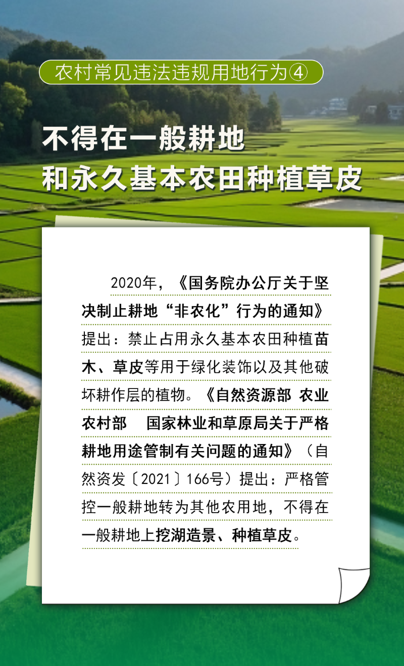 不得在一般耕地和永久基本农田种植草皮——农村常见的12类违法违规用地行为④