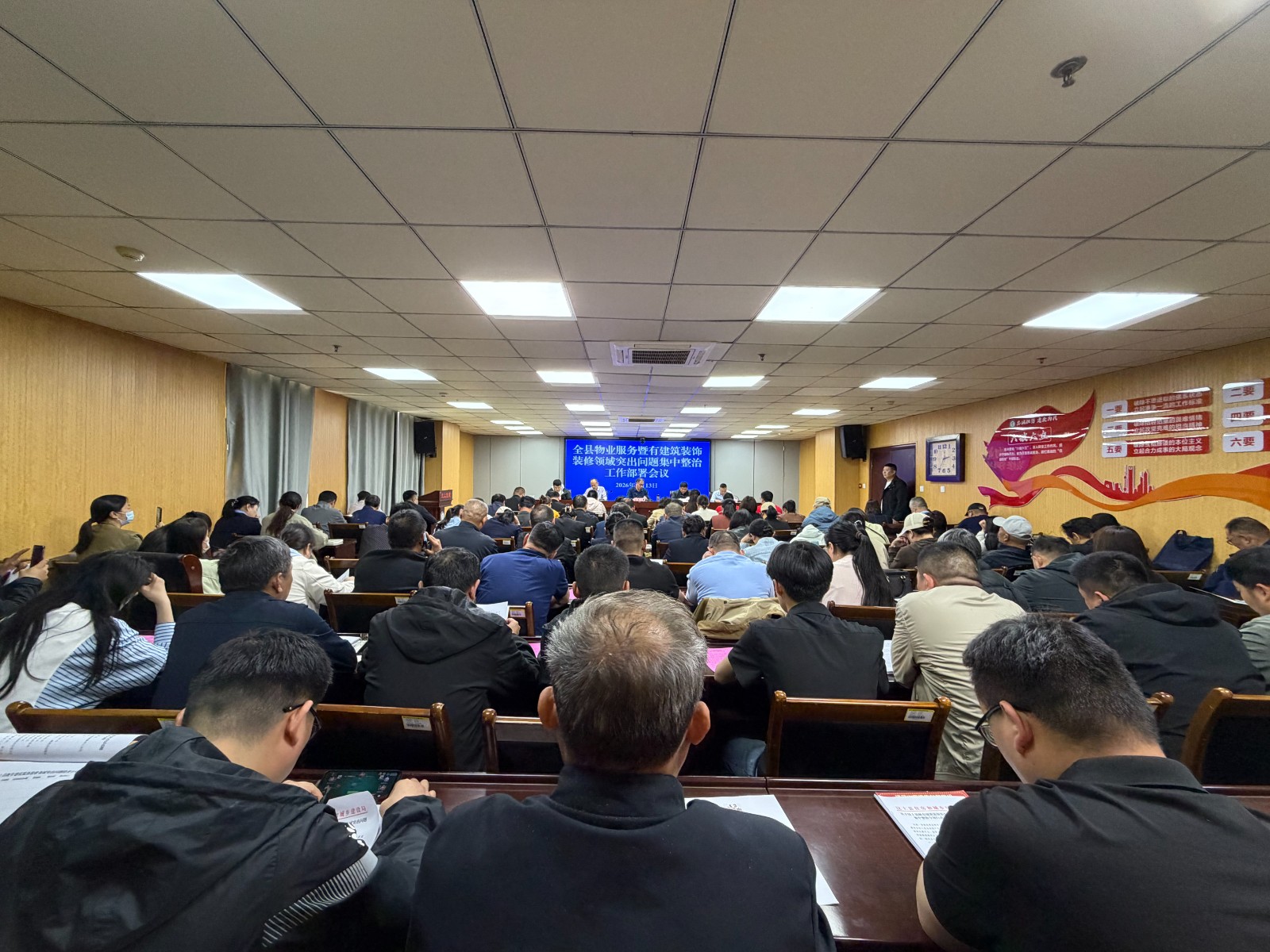 近期,全县物业服务暨既有建筑装饰装修领域突出问题集中整治工作部署会议召开。县住建局二级主任科员宋恩江、县住房保障中心副主任田春耕及相关科室负责人出席会议。各街道物业办负责同志,全县具有建筑装饰装修专业承包资质的企业负责人、在建装饰装修项目的家装企业负责人、相关物业企业负责人等100余人参加会议。