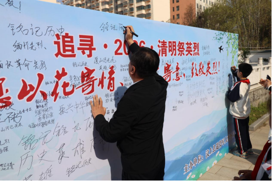 又是一年清明至,缅怀英烈寄哀思。为深切缅怀革命先烈的丰功伟绩,传承弘扬伟大英烈精神,深化全县爱国主义教育,4月3日,汶上县退役军人事务局联合多部门、全县各中小学组织全县相关单位干部职工齐聚汶上县烈士陵园,隆重开展“追寻·2026·清明祭英烈”主题祭扫活动,以庄重肃穆的仪式,祭奠革命先烈、传承红色基因,表达全县干部群众对革命先烈的无限追思与崇高敬意。 松柏苍翠守护英魂,丰碑矗立铭记功勋。活动现场,全体参与人员整齐列队、神情庄重,在肃穆的氛围中,祭扫活动正式拉开帷幕。 鞠躬默哀寄哀思,初心如磐忆忠魂。全体人员面向革命烈士纪念碑,整齐行三鞠躬礼,随后低头静立、默哀一分钟,深切缅怀为民族独立、人民解放、国家富强和人民幸福英勇献身的革命先烈,深情追忆先辈们浴血奋战、无私奉献的英雄壮举,用心感悟革命先辈坚定不移的理想信念与舍生取义的崇高精神。 敬献鲜花敬英烈,瞻仰丰碑传精神。默哀仪式结束后,青少年学生们手持扫帚、抹布,认真清扫烈士陵园内的落叶、杂物,仔细擦拭烈士墓碑、纪念碑基座,不放过每一处角落,用实际行动呵护烈士安息之地。全体干部职工、学生代表依次依次缓步绕行革命烈士纪念碑一周,驻足瞻仰镌刻着英雄事迹的丰碑,满怀崇敬之情将手中鲜花轻轻敬献于碑前。一束束鲜花承载着全县干部群众对英烈的深切缅怀,一声声敬意寄托着对革命精神的永续传承。 铭记誓言担使命,签名践行守初心。祭扫活动尾声,全体人员共同前往主题签名墙,参与“追寻·2026·清明祭英烈”集体签名活动,大家一笔一划郑重写下自己的名字,以笔墨为誓、以行动践初心,许下铭记英烈事迹、传承红色血脉、勇担时代使命、践行责任担当的庄严承诺。 追寻红色足迹,感悟英烈精神。祭扫仪式结束后,全县各单位干部职工、师生代表分批走进烈士纪念馆,开启一场红色精神研学之旅,认真聆听讲解员讲述革命先烈抛头颅、洒热血,为国家独立、民族解放浴血奋战的峥嵘岁月,深入了解汶上本地革命先辈的英勇事迹和奋斗历程。认真聆听、仔细记录,在红色历史中汲取成长力量,厚植家国情怀。 下一步,汶上县将以此次祭扫活动为契机,把对革命先烈的缅怀崇敬之情,转化为推动全县各项事业高质量发展的强大动力。全县各部门、各单位将携手共进,持续传承红色血脉、弘扬英烈精神,立足岗位、履职尽责、实干担当奋力谱写汶上县经济社会高质量发展新篇章,凝聚起建设美好汶上的磅礴力量。 编辑:张明慧 初审:王向红 终审:赵中旺 |