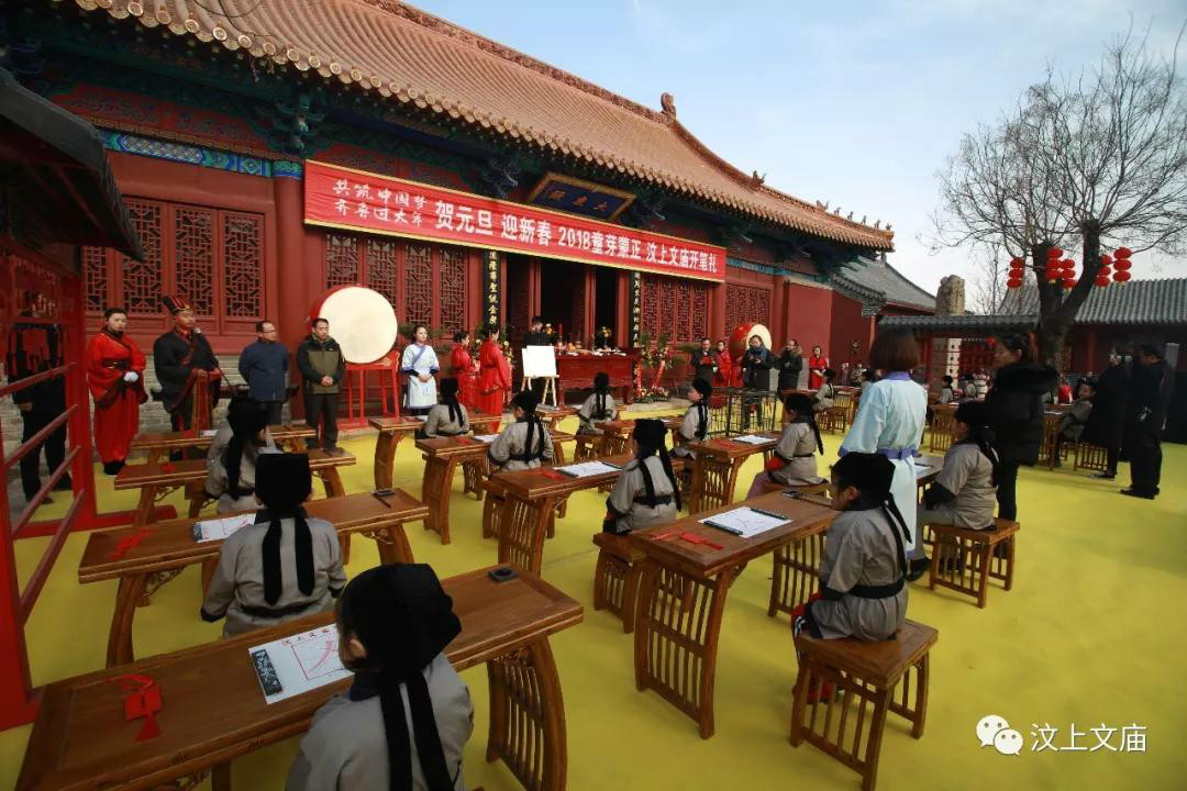 2018年1月6日上午,汶上文庙景区隆重举办2018迎新春贺元旦祭孔暨开笔礼仪式。