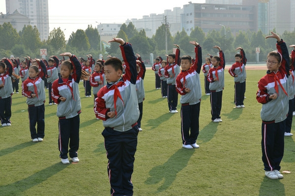 汶上县第一中学、高职校、第一实验中学、第二实验中学、第一实验小学、第二实验小学、第六实验小学7所学校代表全县中小学向在场的所有人员展示了精彩绝伦、充满活力的阳光体育运动展演。青春昂扬的体育舞蹈、虎虎生威的武术表演、朝气蓬勃的搏击表演、律动活泼的足球操……精彩纷呈的节目让我们感受到了全县中小学师生充满活力的精神面貌,看到了汶上县近年来全面贯彻党的教育方针,大力推进素质教育,坚持开展“阳光体育大课间”活动的丰硕成果。