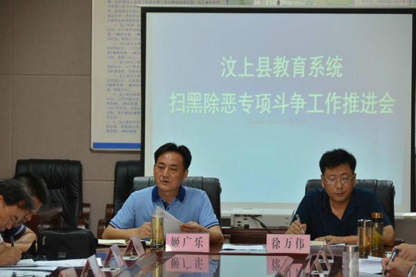 姬广乐强调,全县教育系统各单位、学校要进一步深入学习省市县会议和文件精神,严格按照工作要求,特别是《全市教育系统扫黑除恶专项斗争工作方案》和汶上县委办公室、汶上县政府办公室《关于深化扫黑除恶专项斗争有关工作的通知》任务要求,结合全县教育工作实际,有针对性地做好扫黑除恶专项斗争工作宣传发动、警校联防、学生安全教育、学校安全“三防”等工作,切实提升平安和谐校园创建水平,切实改善校园周边环境和治安状况,为全县教育事业健康平稳发展营造良好环境。