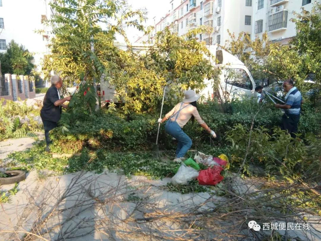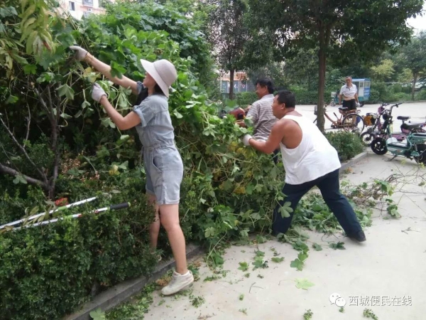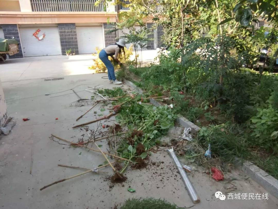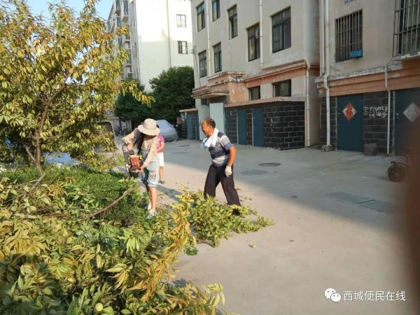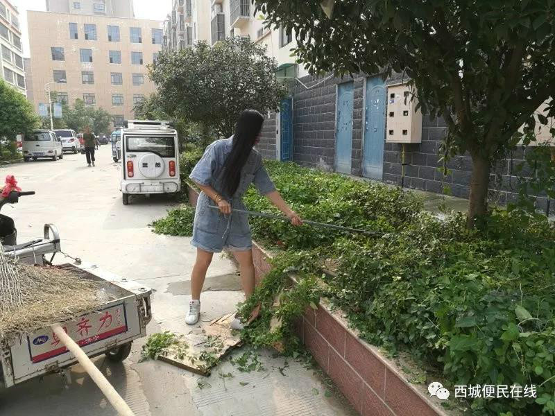 她,顶着烈日为小区环境整洁奋战;