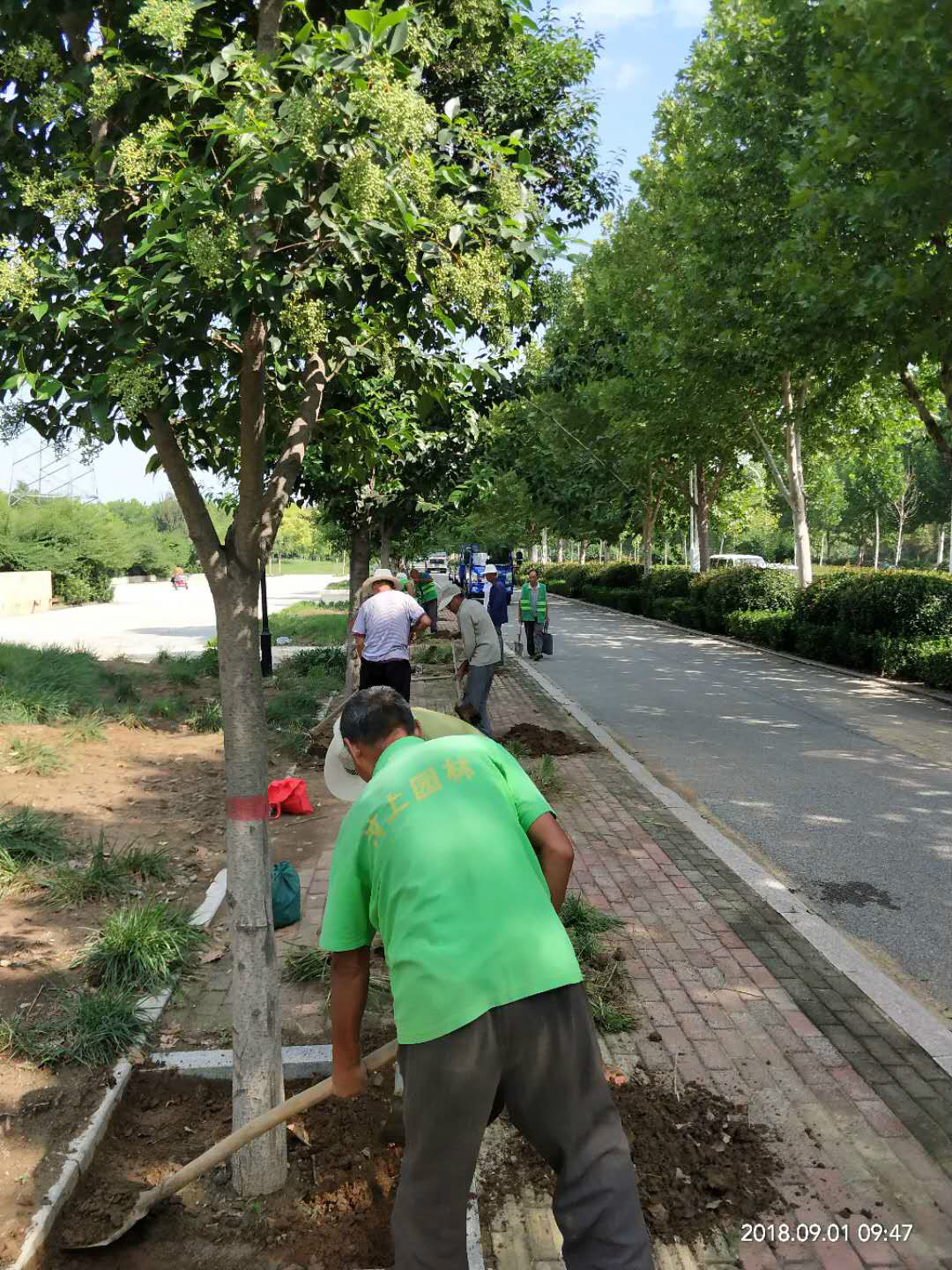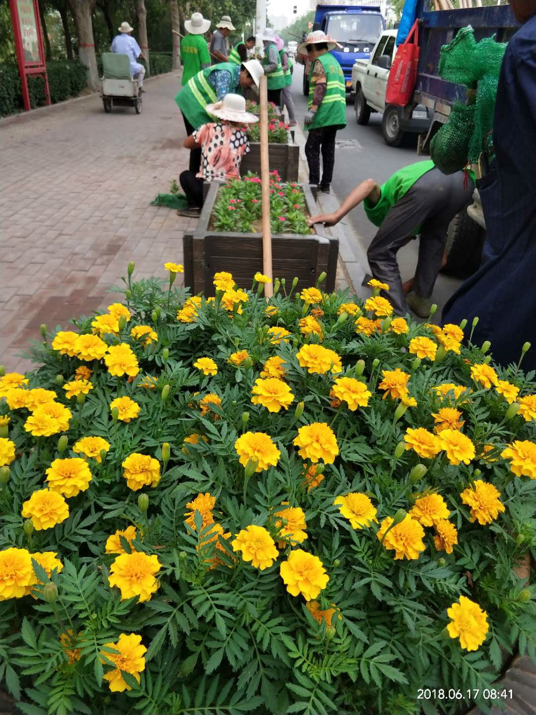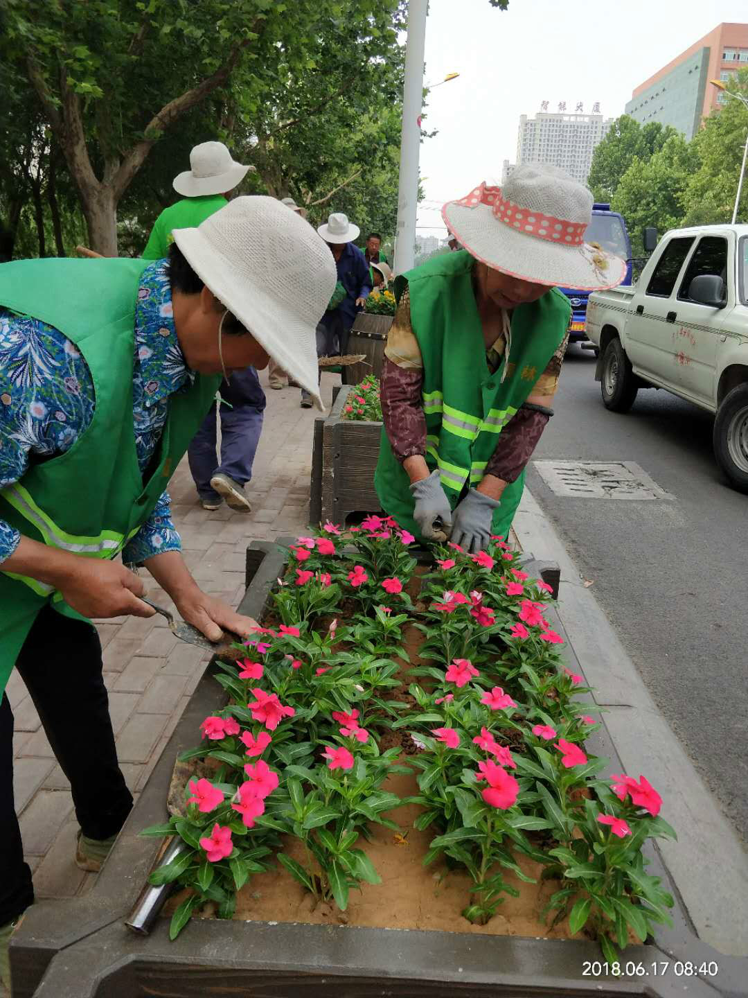 三、对城区11080余平方裸露的土地和道路两侧栽植苗木、花草