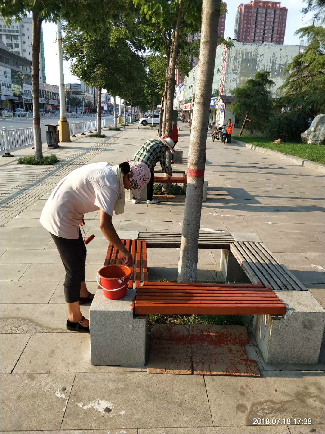 五、对城区广场和绿地内50个坐凳、3500余平方墙面进行粉刷