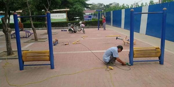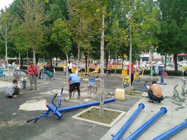 六、对城区广场、绿地的材200多个健身器材进行更换