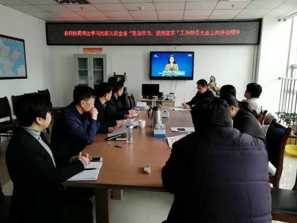 2月13日下午,县科技局召开专题会议,学习传达贯彻全省“担当作为狠抓落实”动员大会、全市提升干部执行力优化营商环境推进项目建设会议和全县深入开展“工作落实年”活动暨提升干部执行力动员大会精神。县科技局全体人员参加会议。