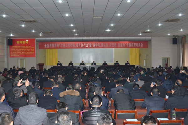 为全面贯彻落实省市县系列会议精神,在全县教育系统深入开展好“工作落实年”活动和“强学习、提站位、深反思、促整改”专题教育活动。2月15日,汶上县教育系统召开“改进工作作风,提升执行力”暨“强学习、提站位、深反思、促整改”专题教育动员会议。