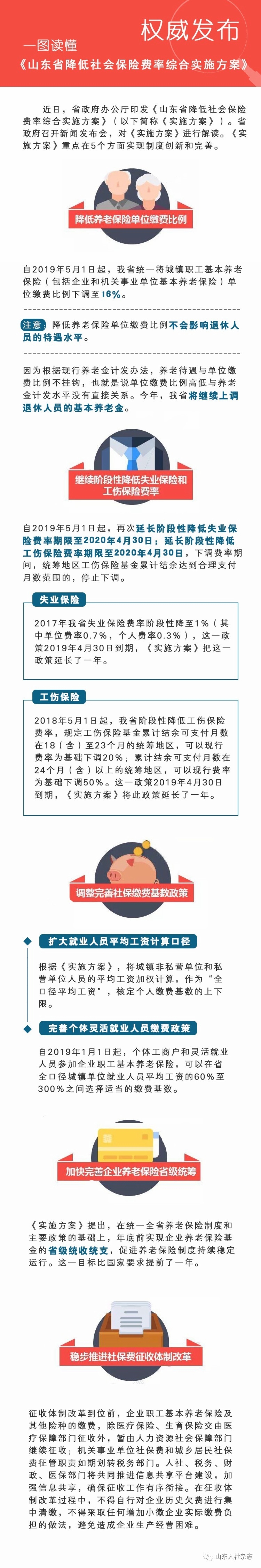 一图读懂《山东省降低社会保险费率综合实施方案》