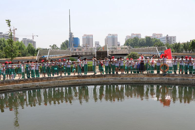 在山东公用集团汶上水务有限公司清源水务分公司,同学们先后参观了从进水到出水的整个处理工艺流程和中心控制室。污水厂技术负责人向同学们介绍了污水处理厂的情况、主要设备、规模以及运行程序,让他们了解了污水处理的工艺流程和相关知识,并参观了初沉池、沉砂池和氧化沟、排水口等。同学们一边听讲解一边仔细地记着,当看到浑浊的污水经过一系列繁杂的流程最终变成洁水时,不禁发出啧啧赞叹声。通过这次参观学习,同学们纷纷表示,了解了污水乱排放的危害以及处理污水的技术和环节,以后要向周围的同学宣传,呼吁大家不浪费水资源,共同保护好环境。
