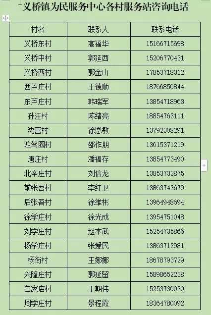 附:义桥镇为民服务中心各村服务站咨询电话