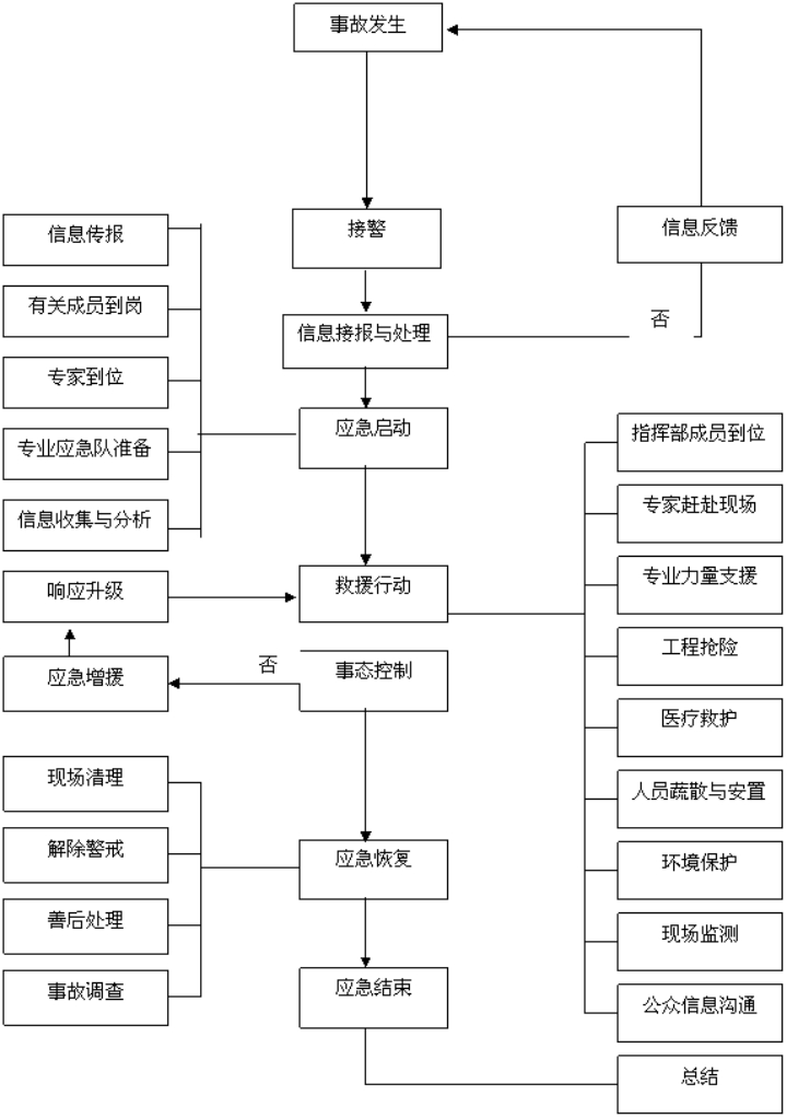 (4)预案启动后,指挥小组办公室应立即组织有关人员赶赴事故现场,配合相关单位参与抢险救援工作,将现场情况及时报告指挥小组组长,并立即成立现场抢险救援指挥部。