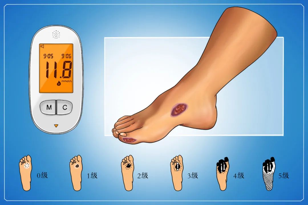糖尿病足严重者可导致截肢。