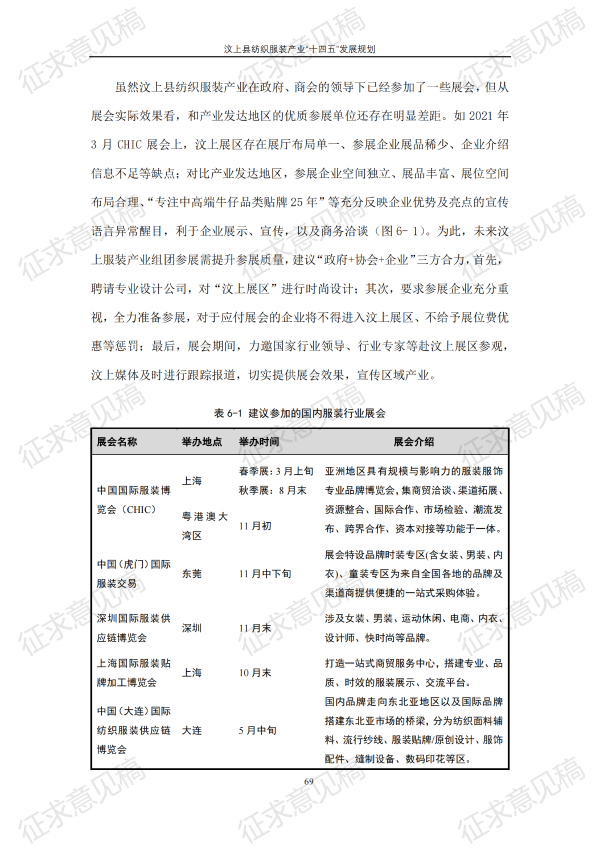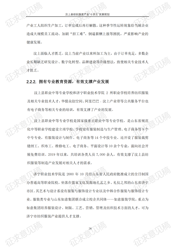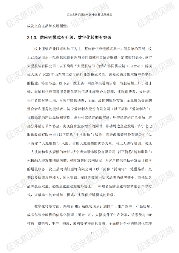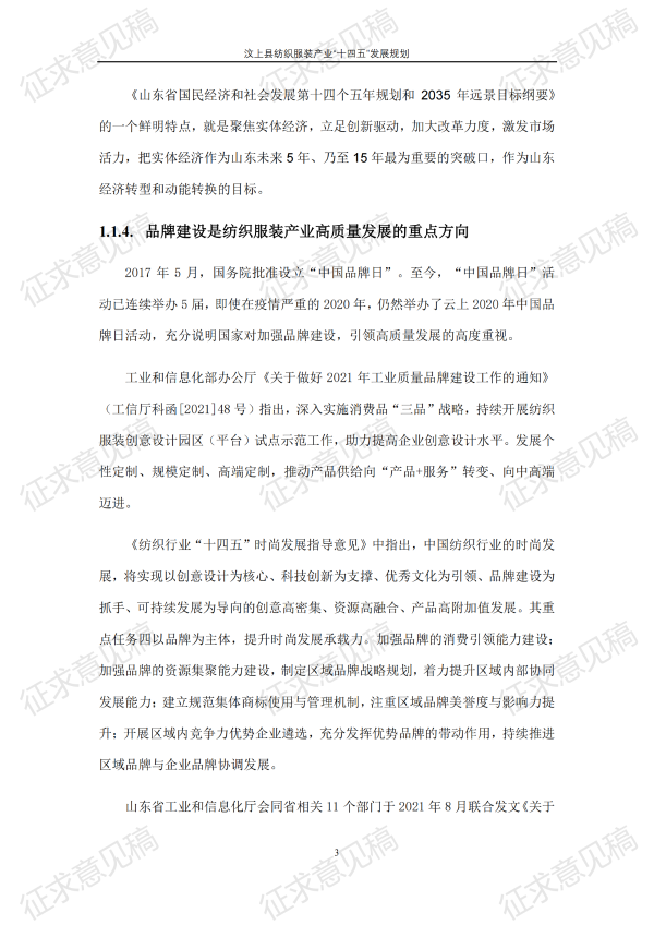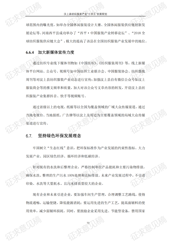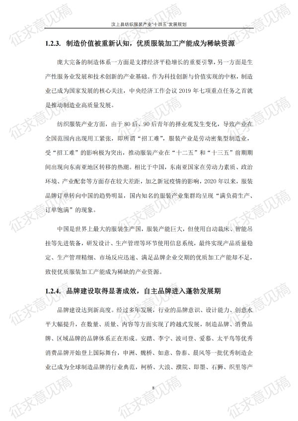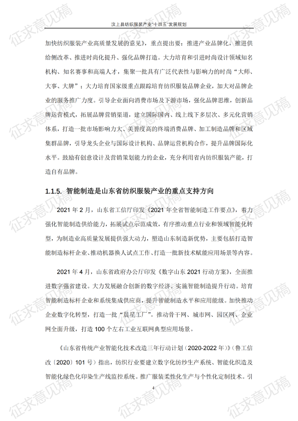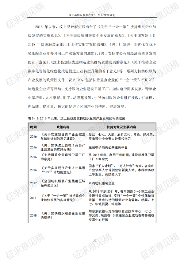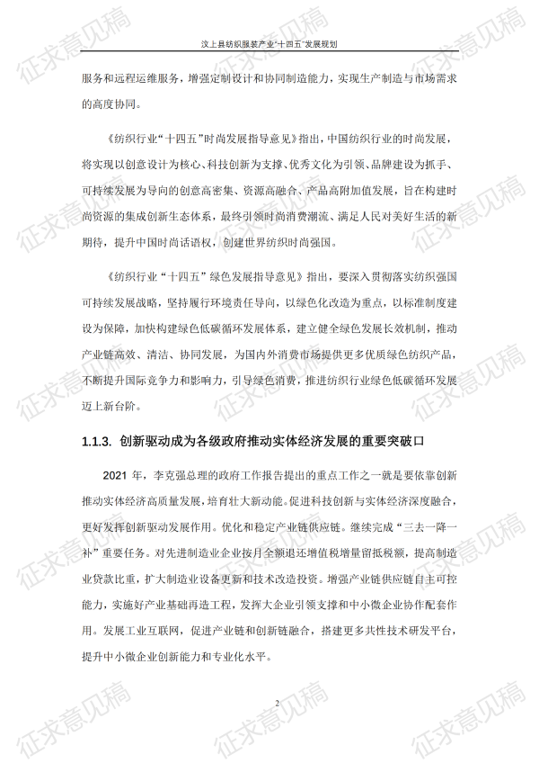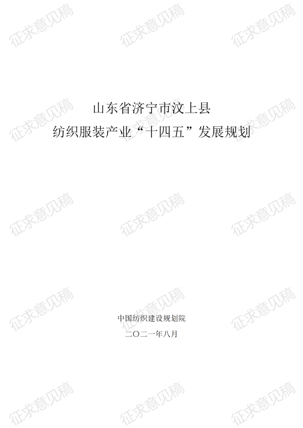现将《汶上县纺织服装产业“十四五”发展规划(征求意见稿)》面向社会公开征求意见,请结合我县工作实际,提出具体修改意见,修改意见请于12月6日前反馈至县工业和信息化局消费品产业科。联系电话:7283316。