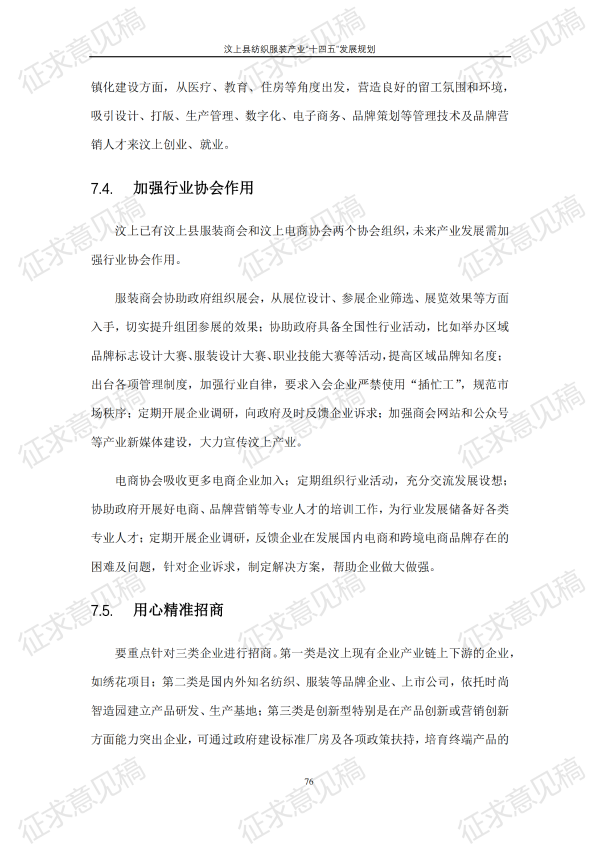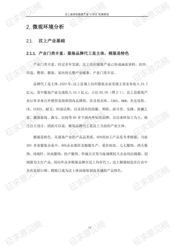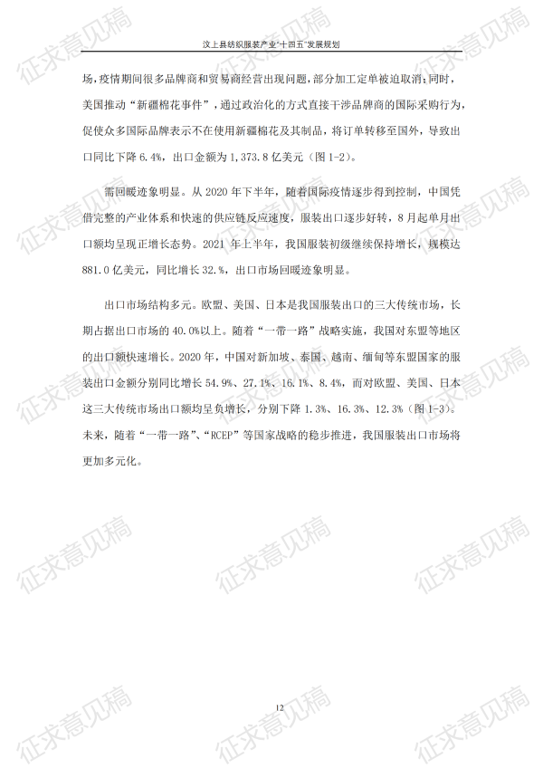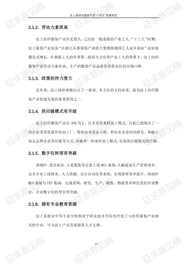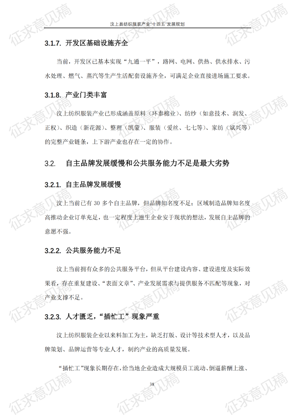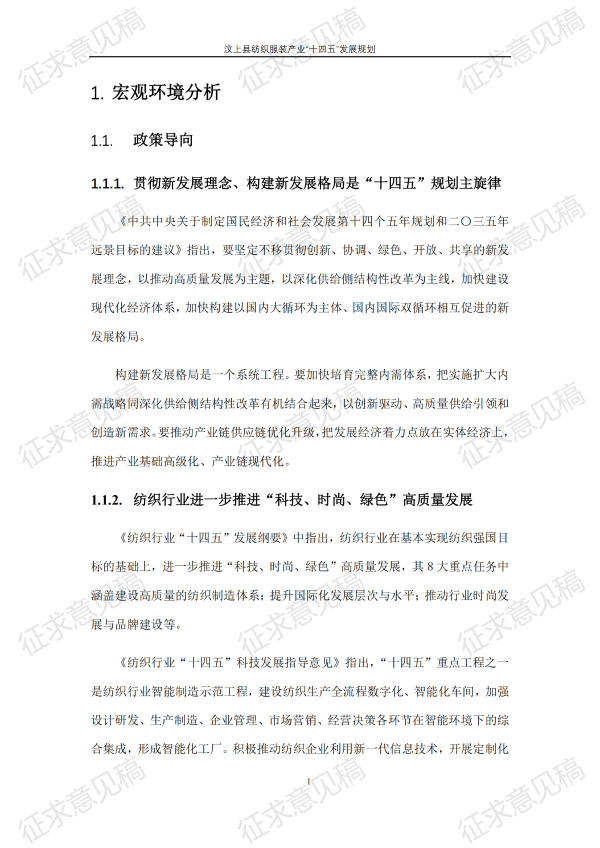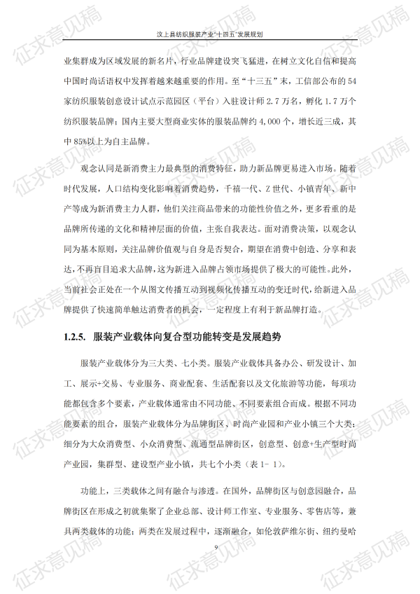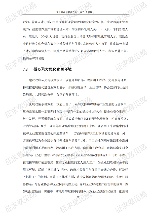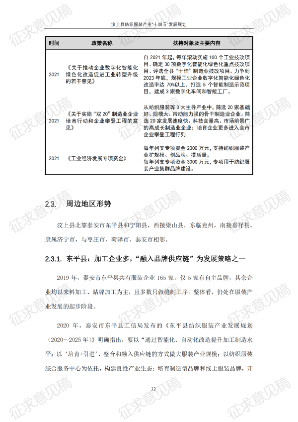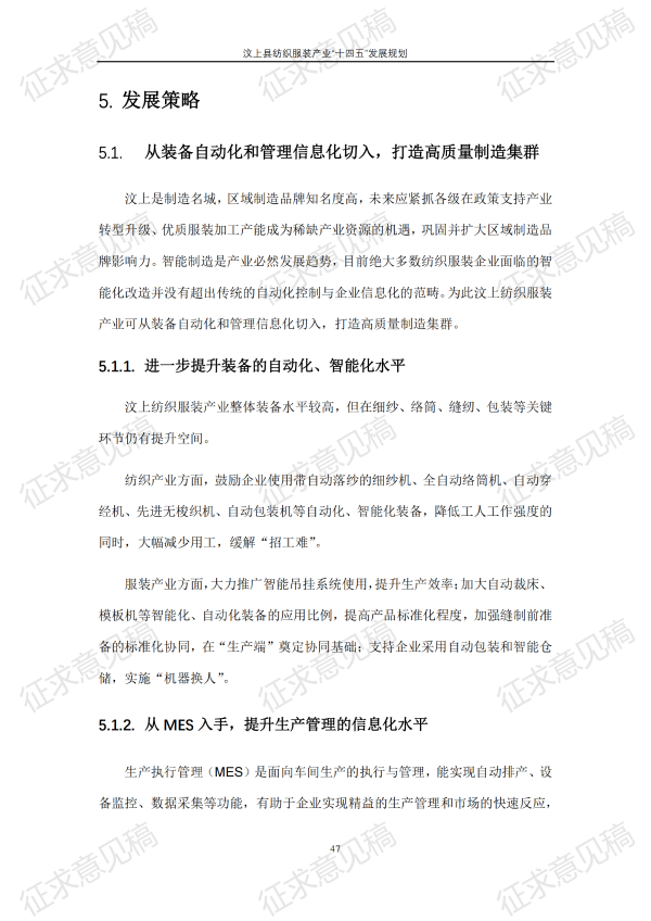 现将《汶上县纺织服装产业“十四五”发展规划(征求意见稿)》面向社会公开征求意见,请结合我县工作实际,提出具体修改意见,修改意见请于12月6日前反馈至县工业和信息化局消费品产业科。联系电话:7283316。