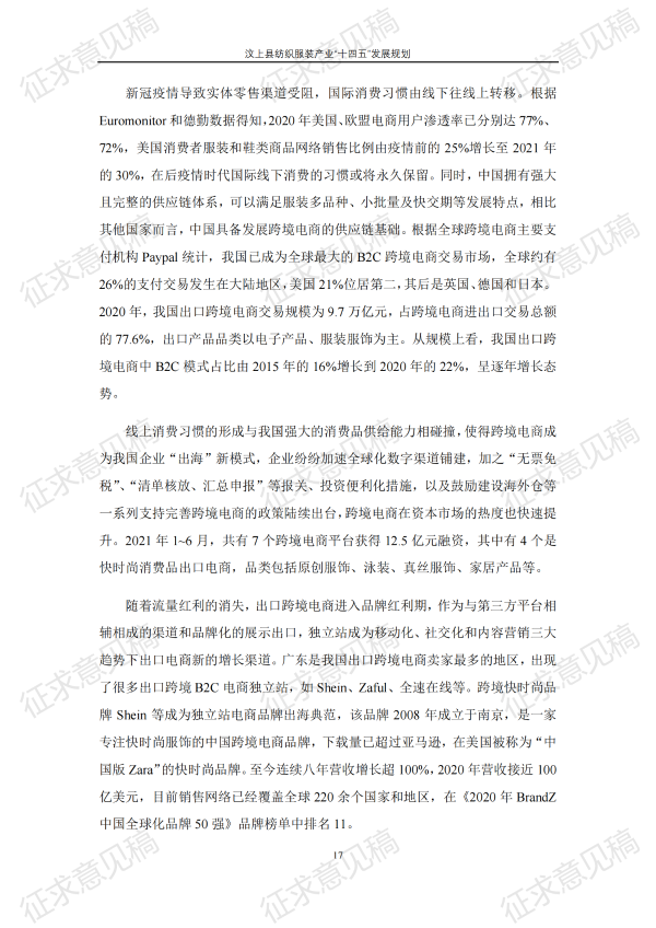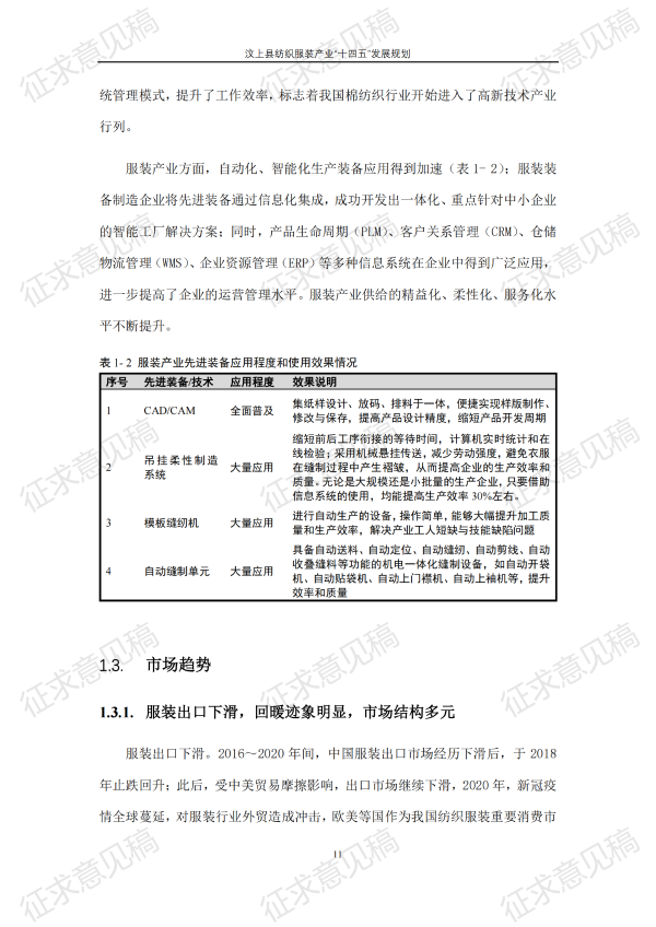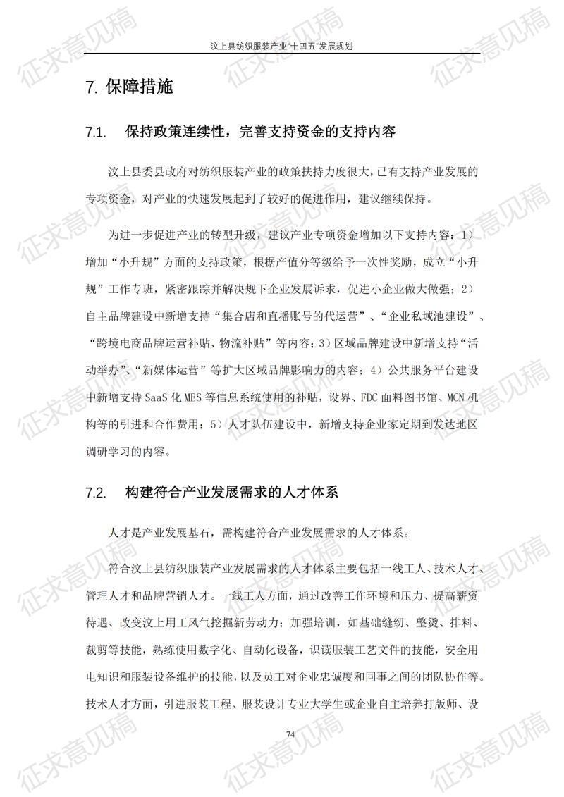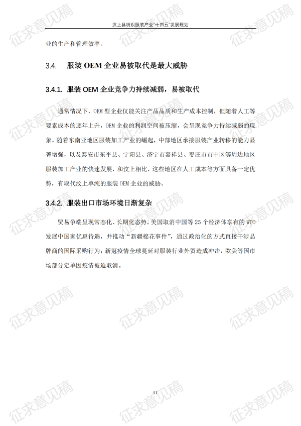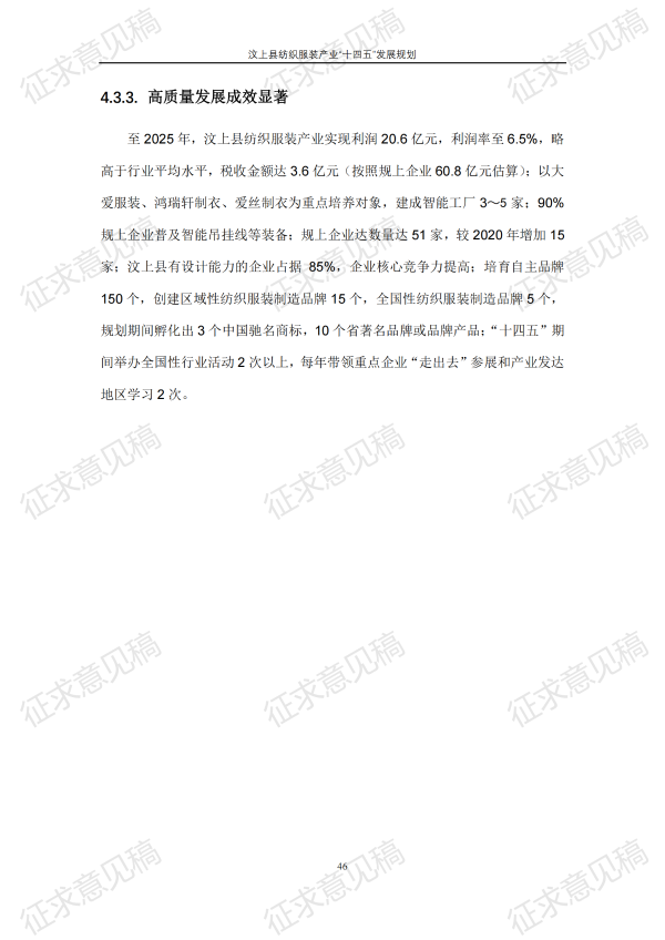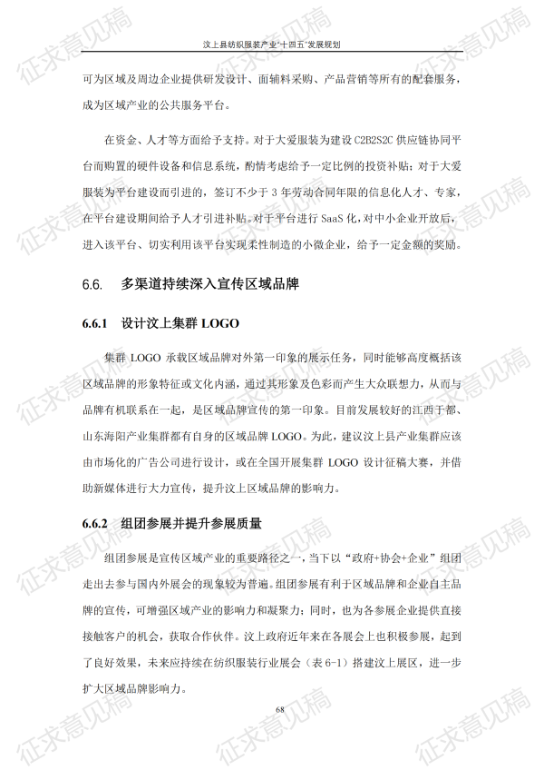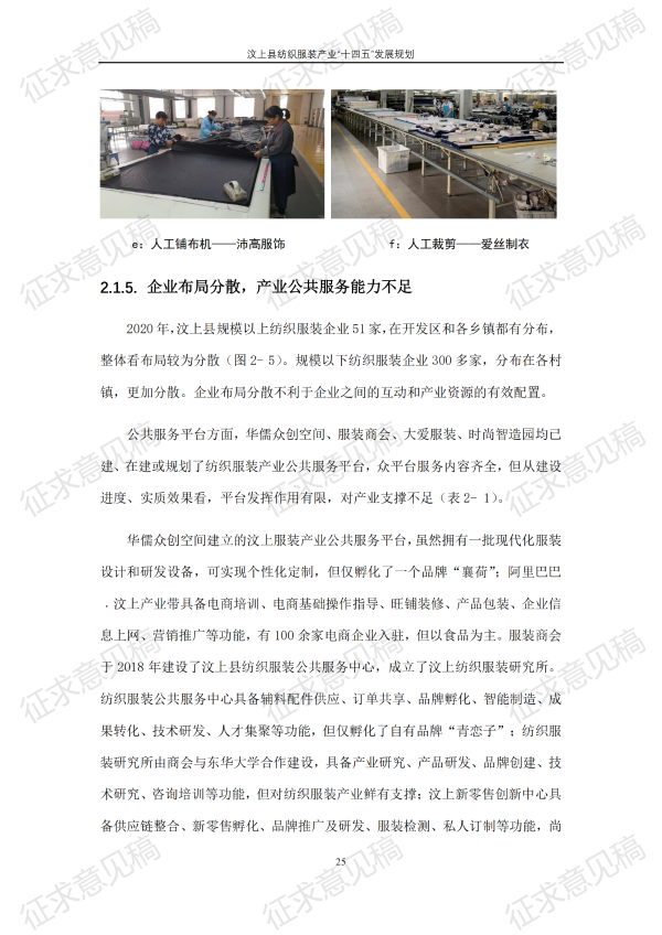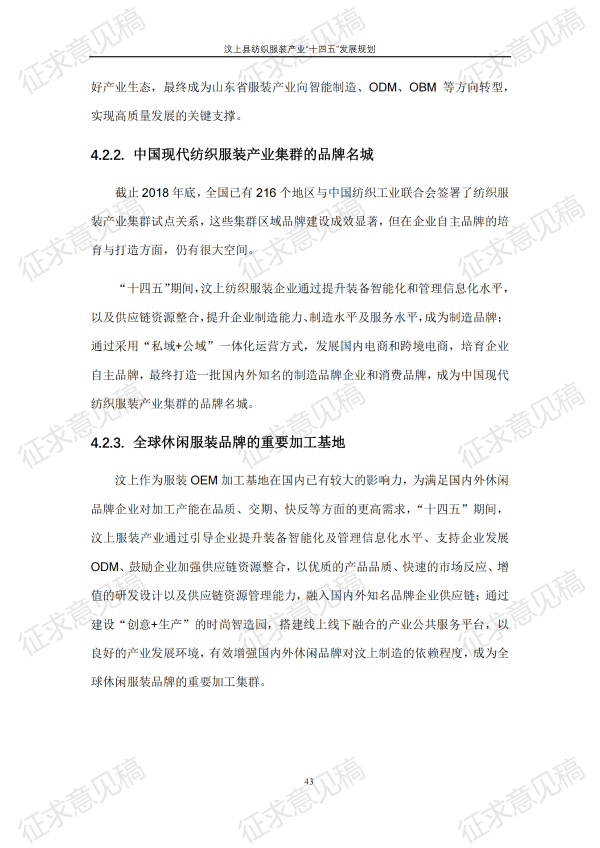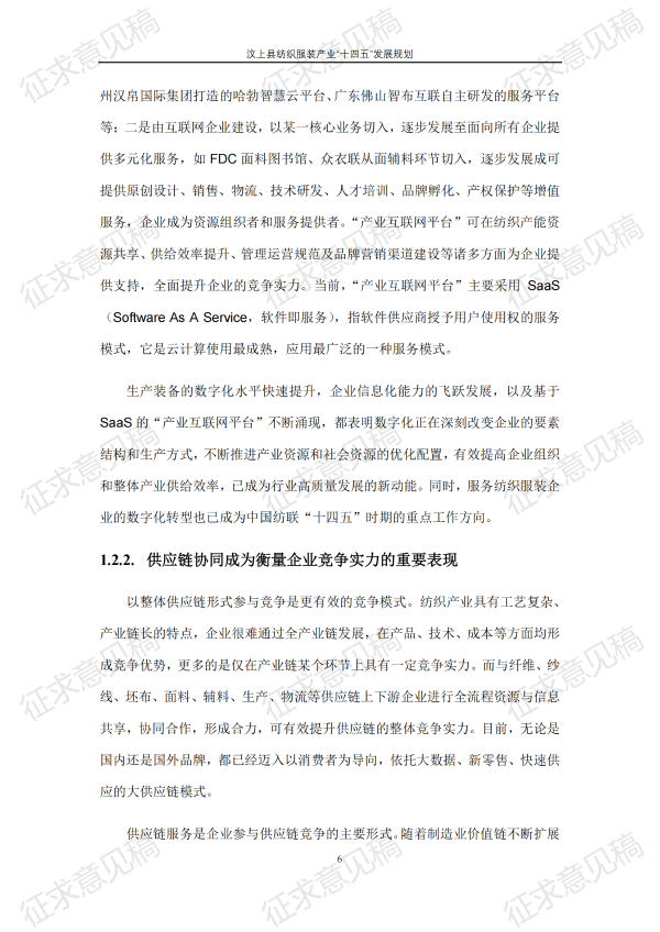 现将《汶上县纺织服装产业“十四五”发展规划(征求意见稿)》面向社会公开征求意见,请结合我县工作实际,提出具体修改意见,修改意见请于12月6日前反馈至县工业和信息化局消费品产业科。联系电话:7283316。
