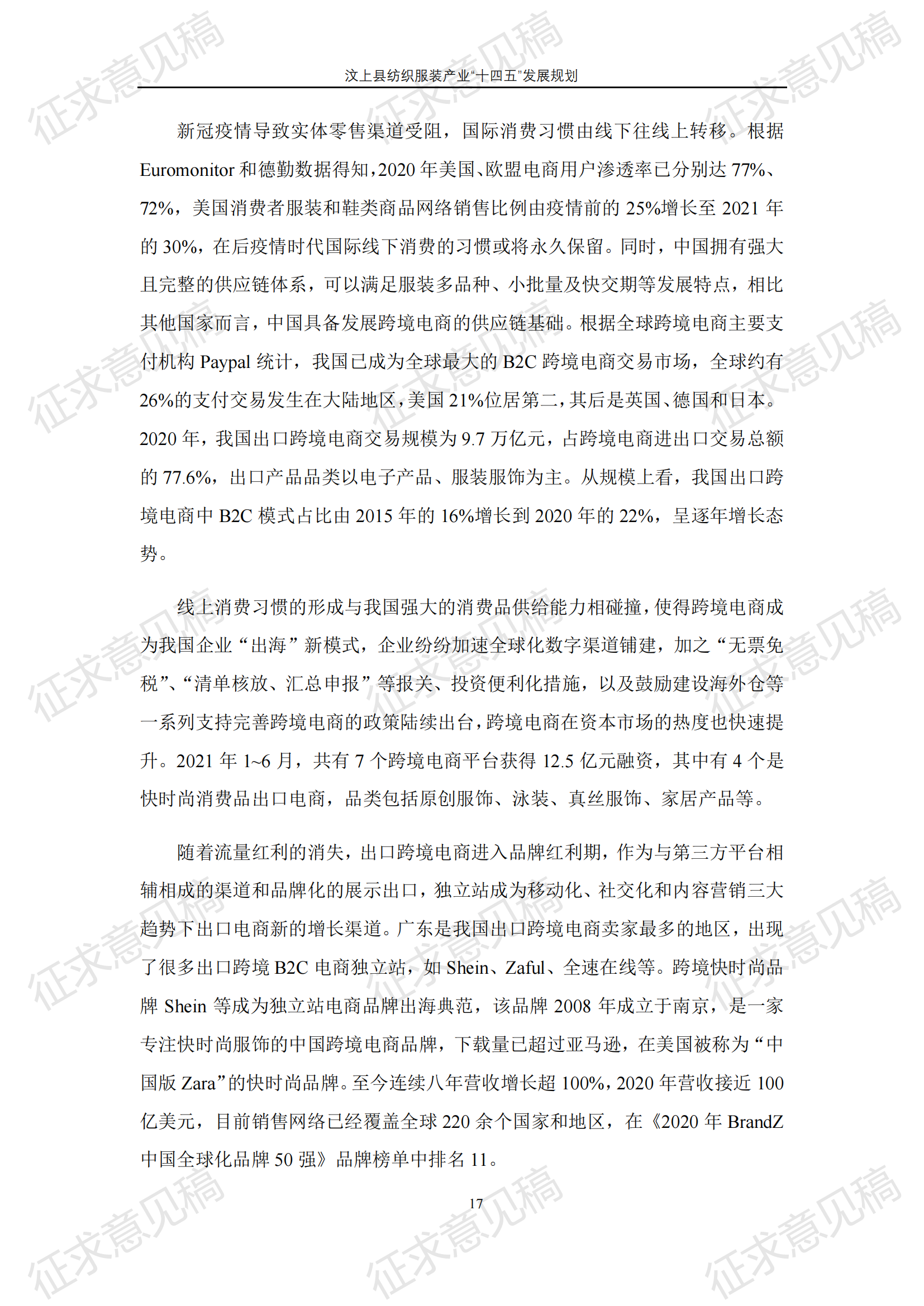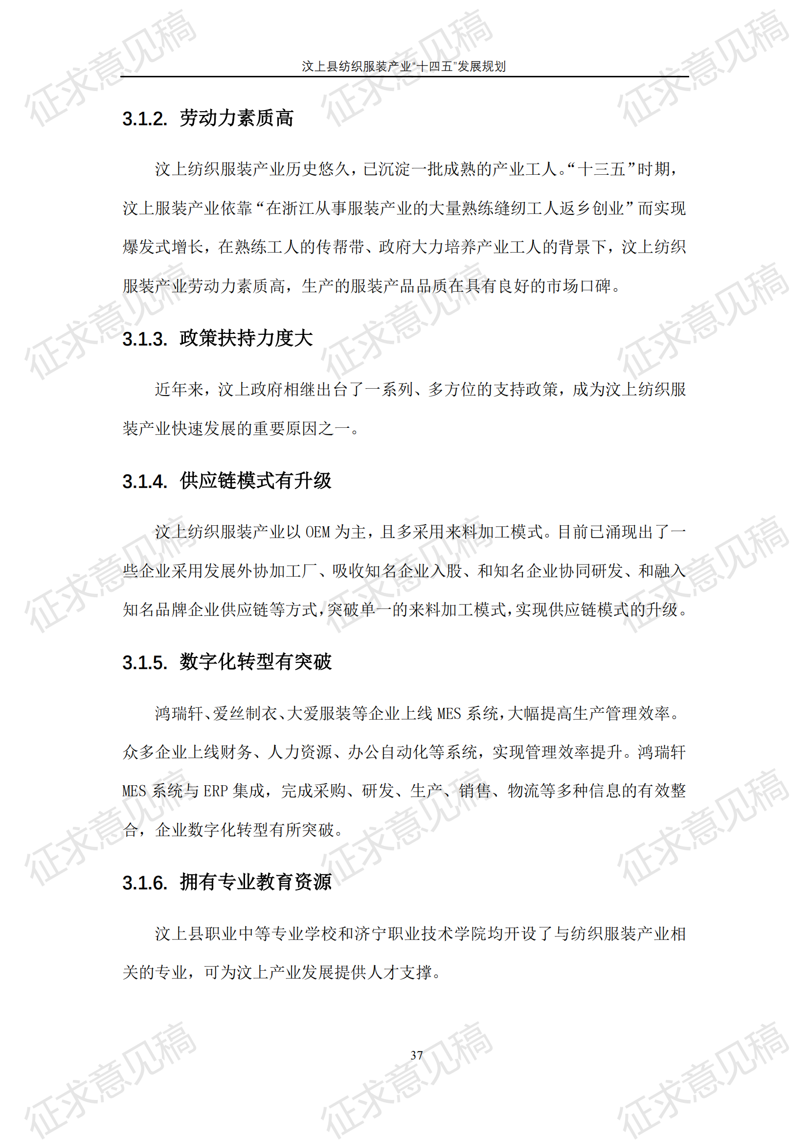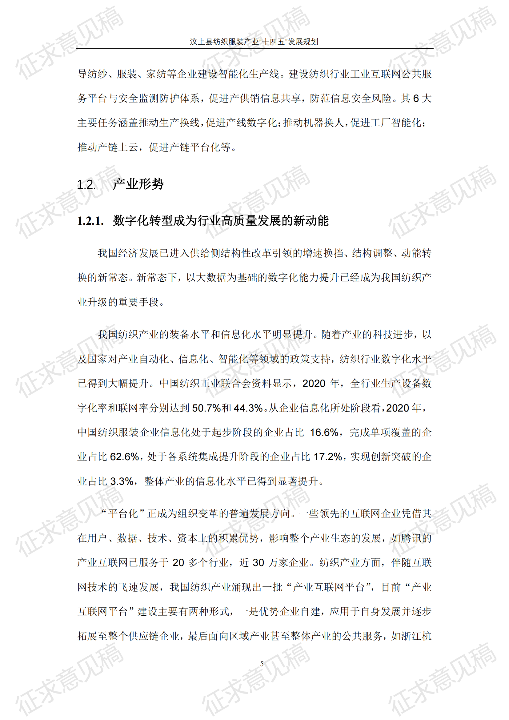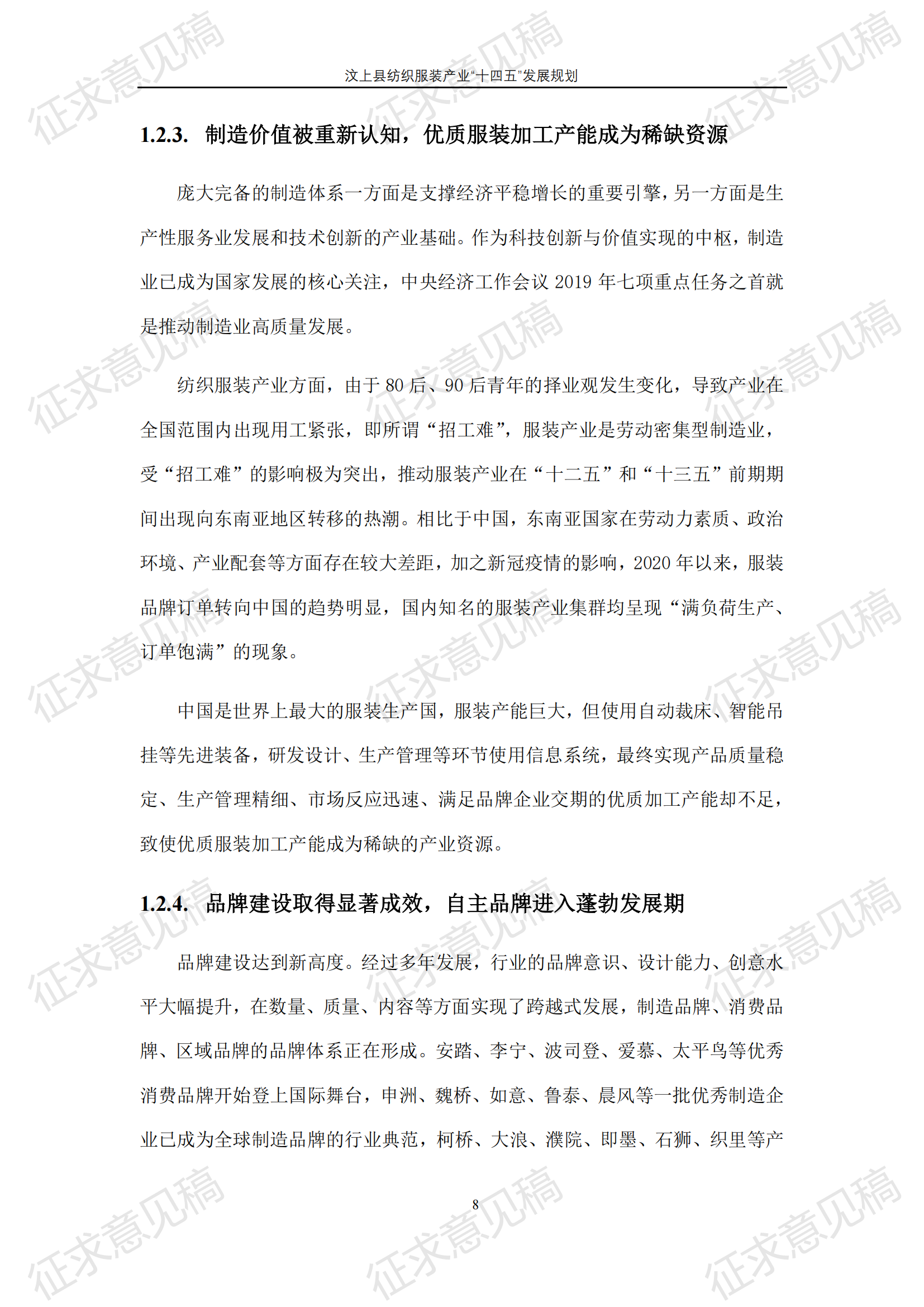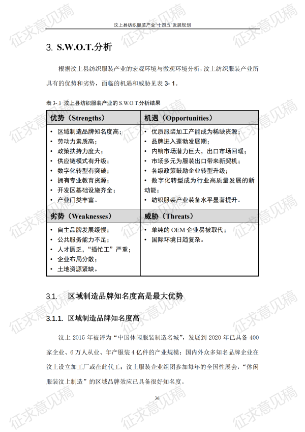 现将《汶上县纺织服装产业“十四五”发展规划(征求意见稿)》面向社会公开征求意见,请结合我县工作实际,提出具体修改意见,修改意见请于12月6日前反馈至县工业和信息化局消费品产业科。联系电话:7283316。