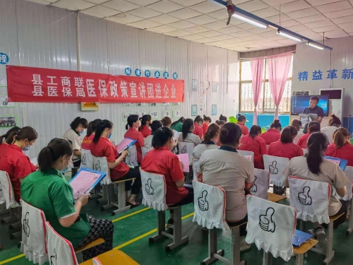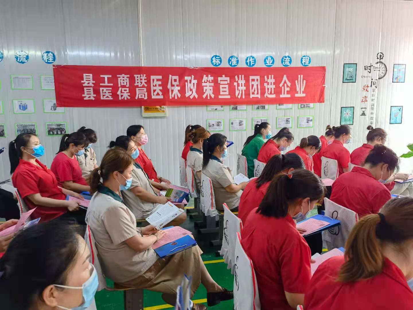 为进一步推进党史学习教育走实走深, 按照党史学习教育、“牢记殷切嘱托、忠诚干净担当、喜迎建党百年”专题教育要求,学史力行,转变机关工作作风,扎实开展医保政策“五进”宣讲活动,切实为群众办实事。6月10日下午,汶上县医疗保障局联合县工商联走进济宁龙进鞋业有限公司,开展“我为企业办实事”医保政策宣讲活动。