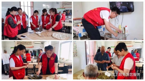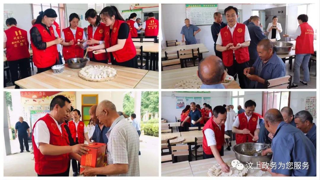 活动现场,县行政审批服务局的志愿者们为老人送上粽子、面包等慰问品,陪老人们聊天、包水饺,打扫卫生。