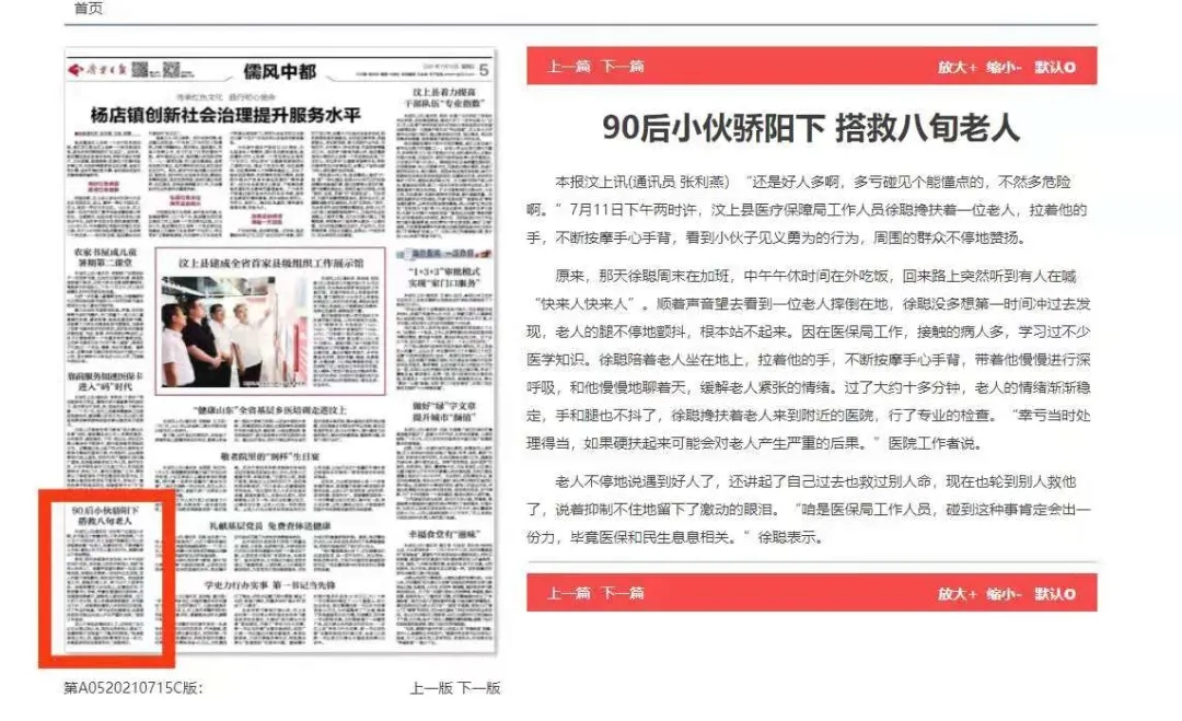 老人不停地说遇到好人了,还讲起了自己过去也救过别人命,现在也轮到别人救他了,说着抑制不住地留下了激动的眼泪。“咱是医保局工作人员,碰到这种事肯定会出一份力,毕竟医保和民生息息相关。”徐聪表示。(通讯员 张利燕)