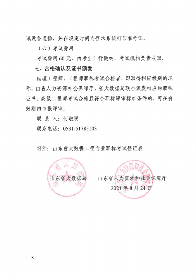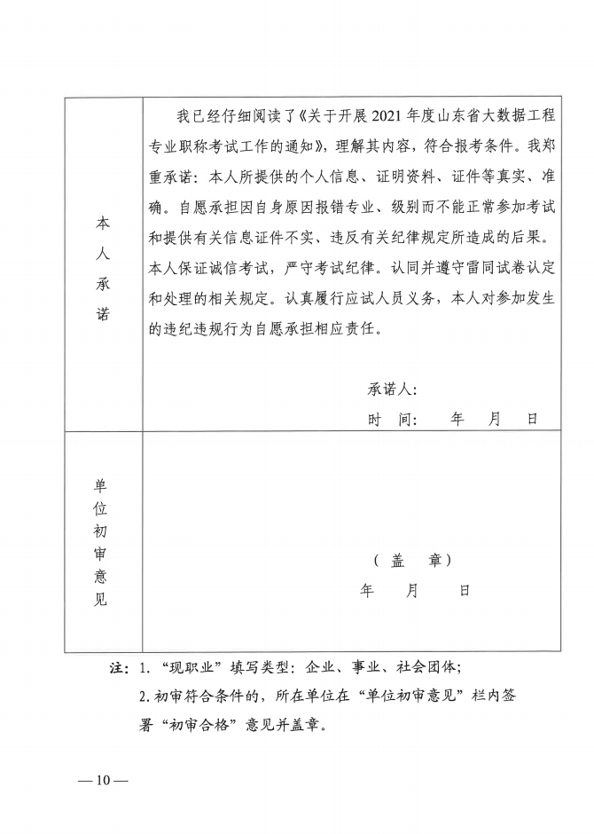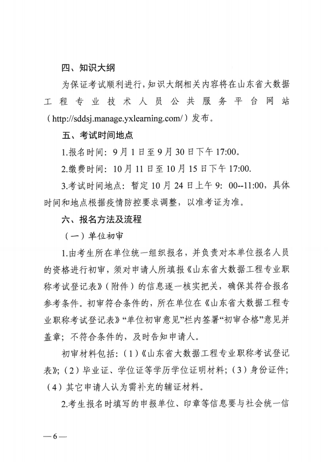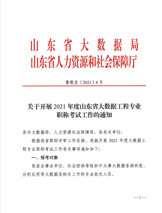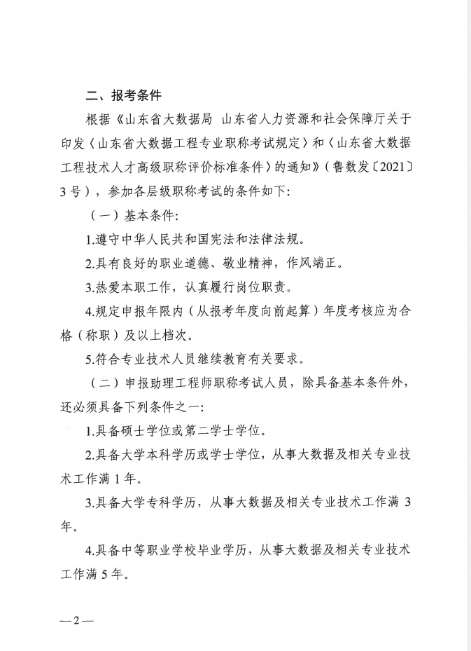 关于开展2021年度山东省大数据工程专业职称考试工作的通知