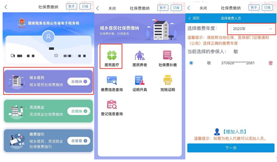 (上图为“爱山东”APP城乡居民基本医疗保险费缴纳步骤图解)