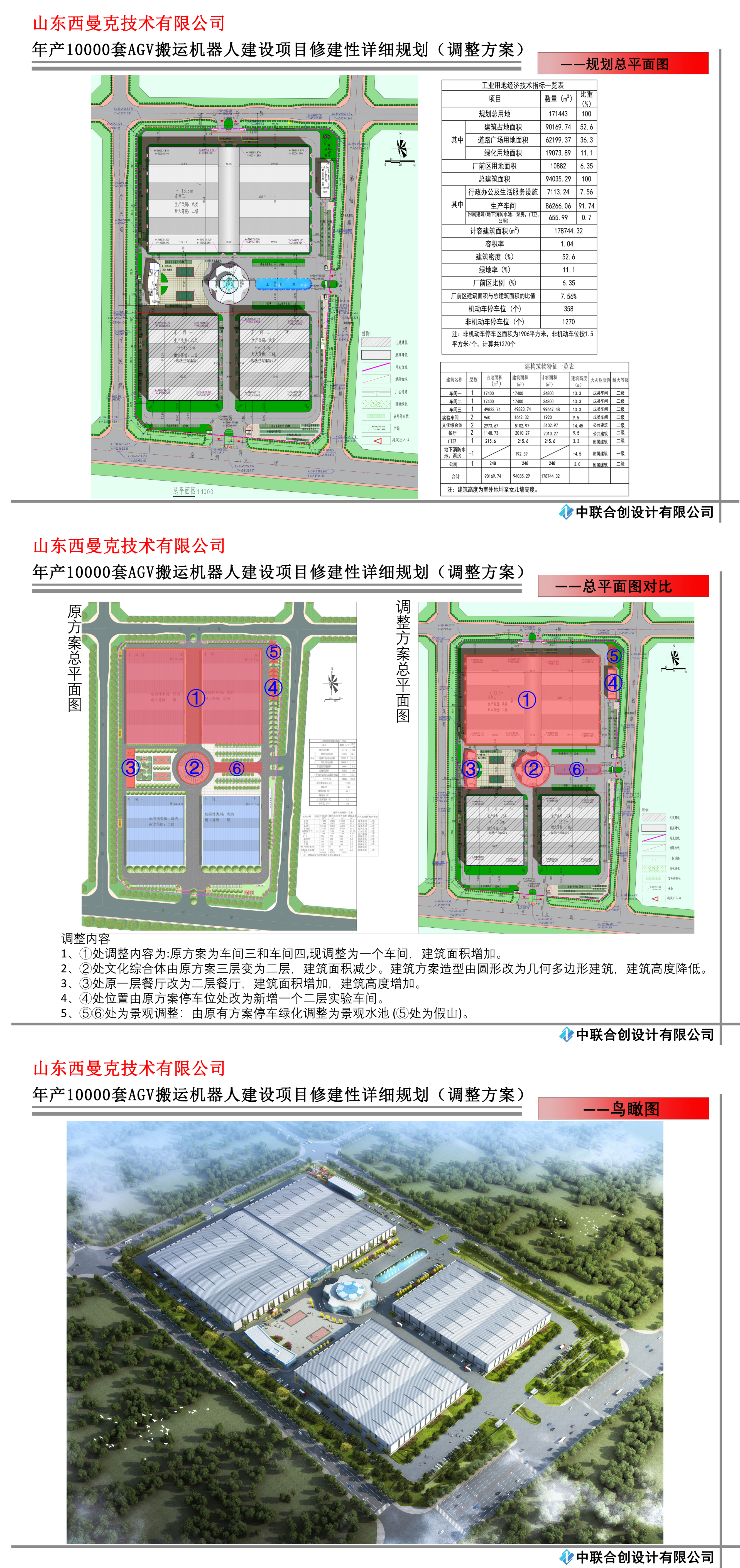 山东西曼克技术有限公司年产10000套AGV搬运机器人建设项目修建性详细规划(调整方案)批后公示