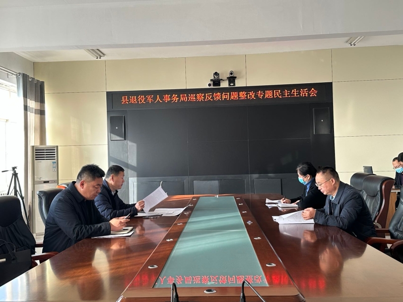 12月12日,县退役军人事务局党组召开巡察反馈问题整改专题民主生活会。县退役军人事务局党组班子成员参加会议,局党组书记、局长杨福军同志主持会议,县纪委监委派驻第二纪检监察组副组长郭旭升同志到会指导。
