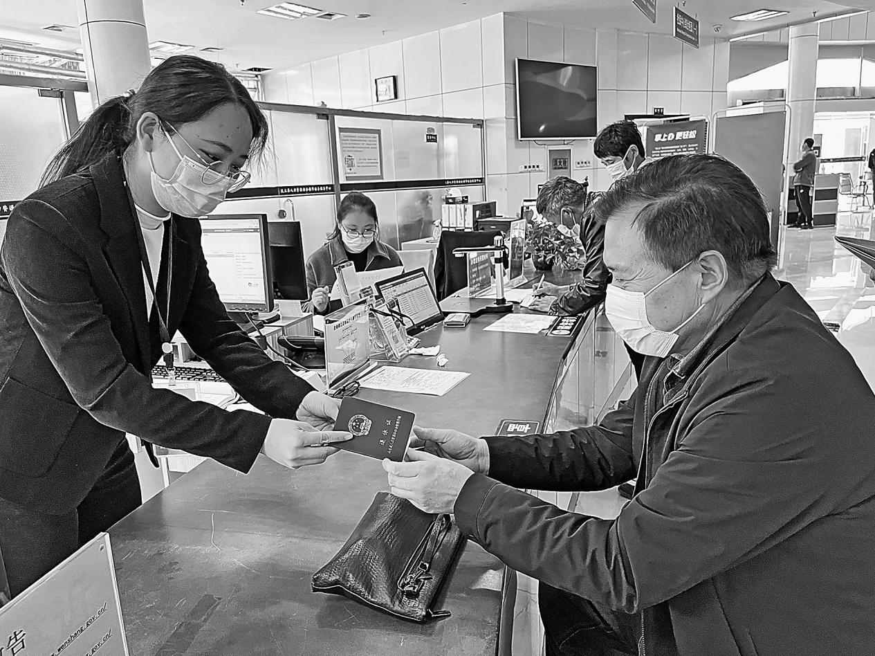 近年来,山东省汶上县扎实推进“人社服务快办行动”,不断提升办事群众的获得感和满意度。图为近日,在该县社保综合服务中心大厅,古中都酒业公司职工李茂全在5分钟内就办结了退休手续。