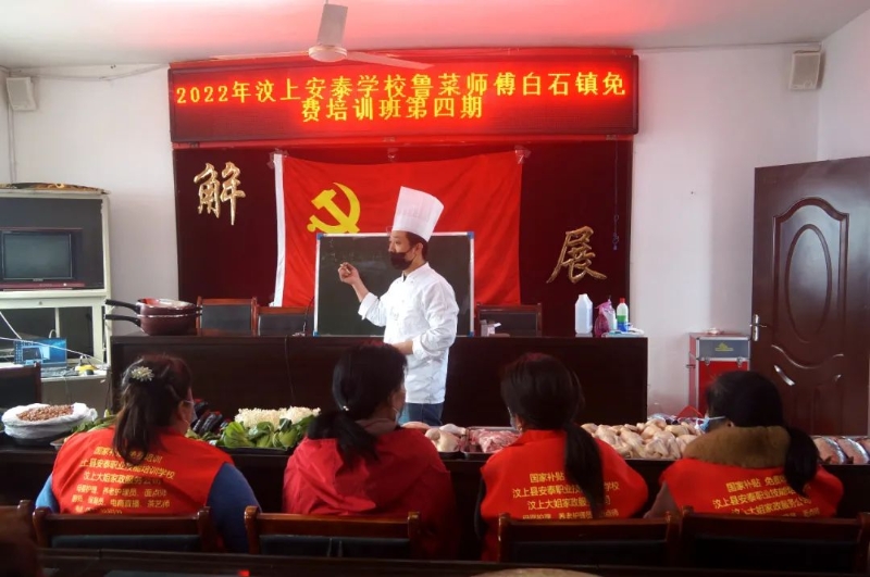 3月4日,白石镇在寨子社区新时代文明实践站成功举办2022年鲁菜师傅免费培训班暨巾帼家政进乡村活动,县妇联四级主任科员张丽、县公共就业服务中心副主任郭红义、镇党委副书记陈中昭、安泰职业技能培训学校校长王敬华等同志出席活动,镇人大副主席李林主持开班仪式,100余人参加培训。 本次培训是白石镇常态化开展的“我为群众办实事”活动,主要围绕各种鲁菜制作,在理论学习、经验分享等方面都进行了精心设计,具有很强的针对性、实效性。尤其是在师资选配上,邀请到鲁菜大师为大家授课。在实践教学上,既有传统经典鲁菜,又有适合当下经营的特色菜品,还有汶上特色菜和花品制作。老师灵巧的双手制作出精致新颖的美食,娴熟的手法、高水平的技能展示引发学员们的阵阵惊叹,现场气氛活跃。