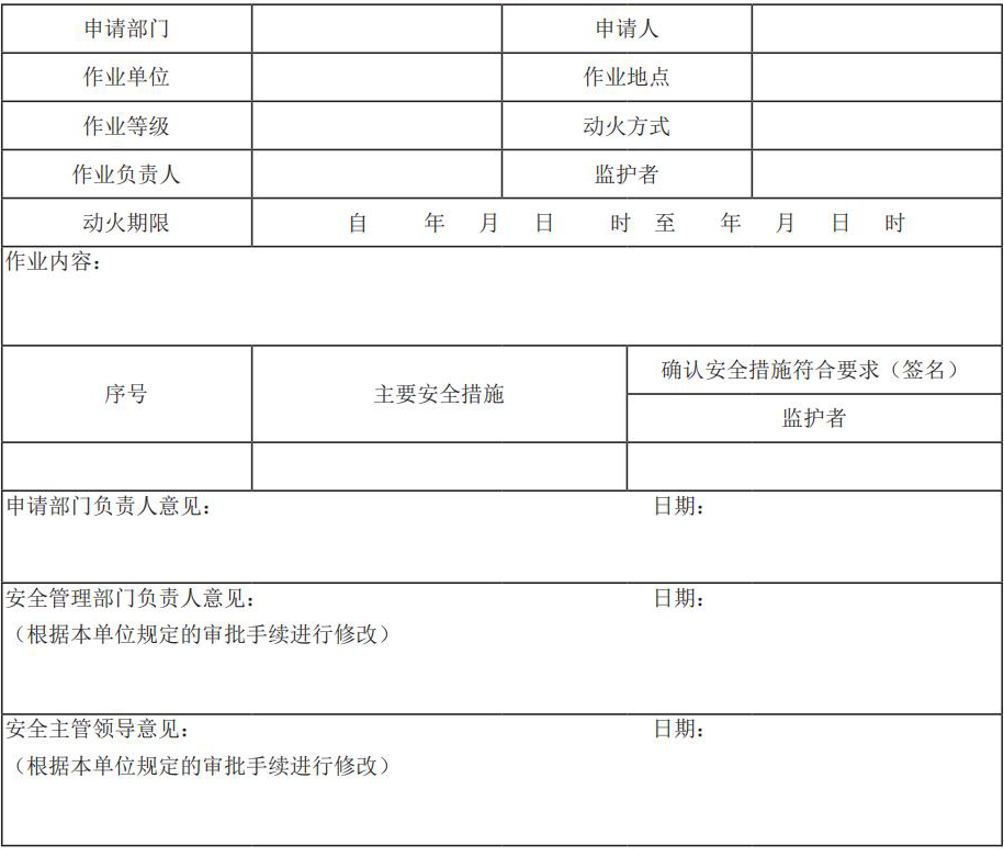 动火作业审批表示例(来源:北京市应急管理局)