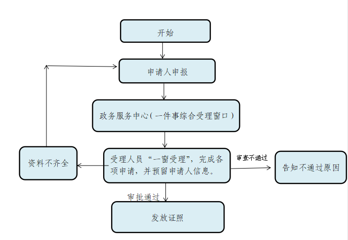 六、办理时限 承诺时限即时办结(不含申请人补正申请材料、整改、现场核查所需时间)。 七、收费依据及标准 不收费。 八、结果送达 现场领取。 九、咨询途径 现场咨询:汶上县政务服务中心三楼D区51号窗口,咨询电话:0537-7250986 十、办理渠道 现场办理:现场咨询:汶上县政务服务中心三楼D区51号窗口,咨询电话:0537-7250986 十一、窗口工作时间 国家法定工作日:9:00-12:00,13:00-17:00 十二、监督电话 0537—7260989 十三、办事流程图 |