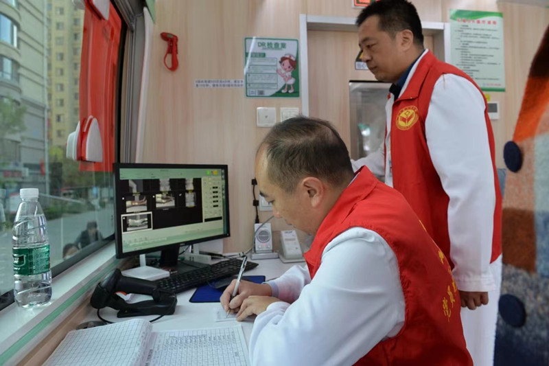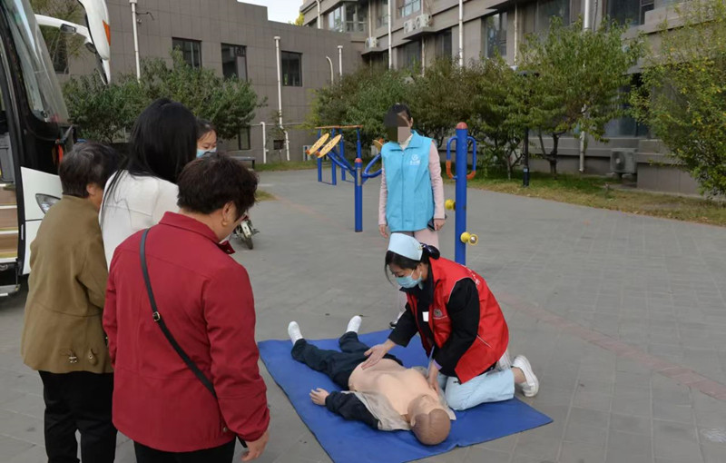 根据季节性疾病或慢病特点,医护人员免费为社区居民进行血压、血糖检测,利用流动“门诊车”为群众做心电图、碳呼吸试验(胃幽门螺旋杆菌)及DR拍片等常规项目服务。急诊科医务人员利用人体模型,给群众详细演示急救步骤和操作手法,每一个步骤,每一个环节都讲的透彻易懂。面对县院的真诚服务,居民们也是热情高涨,积极参与,在医务人员手把手的指导下进行了心肺复苏、人工呼吸等急救实践操作。同行的志愿者们,现场发放健康科普彩页,进行健康保健知识宣传。