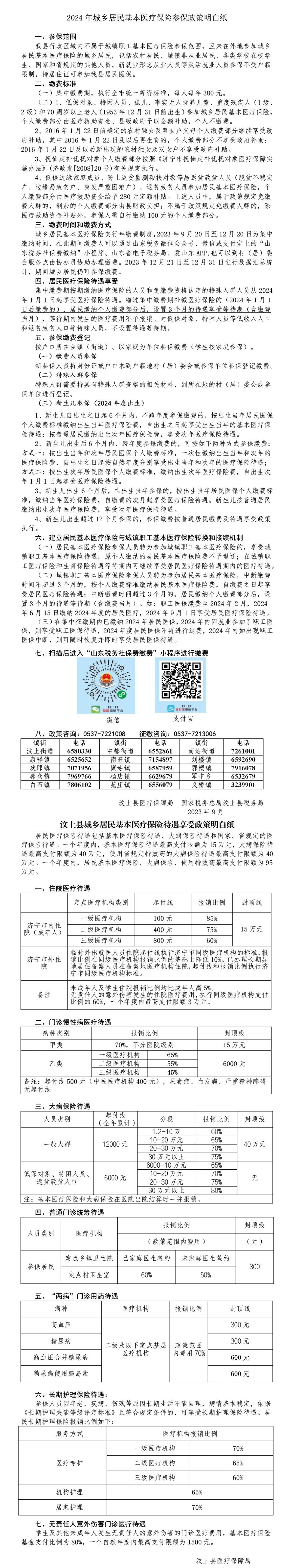2024 年城乡居民基本医疗保险参保政策明白纸