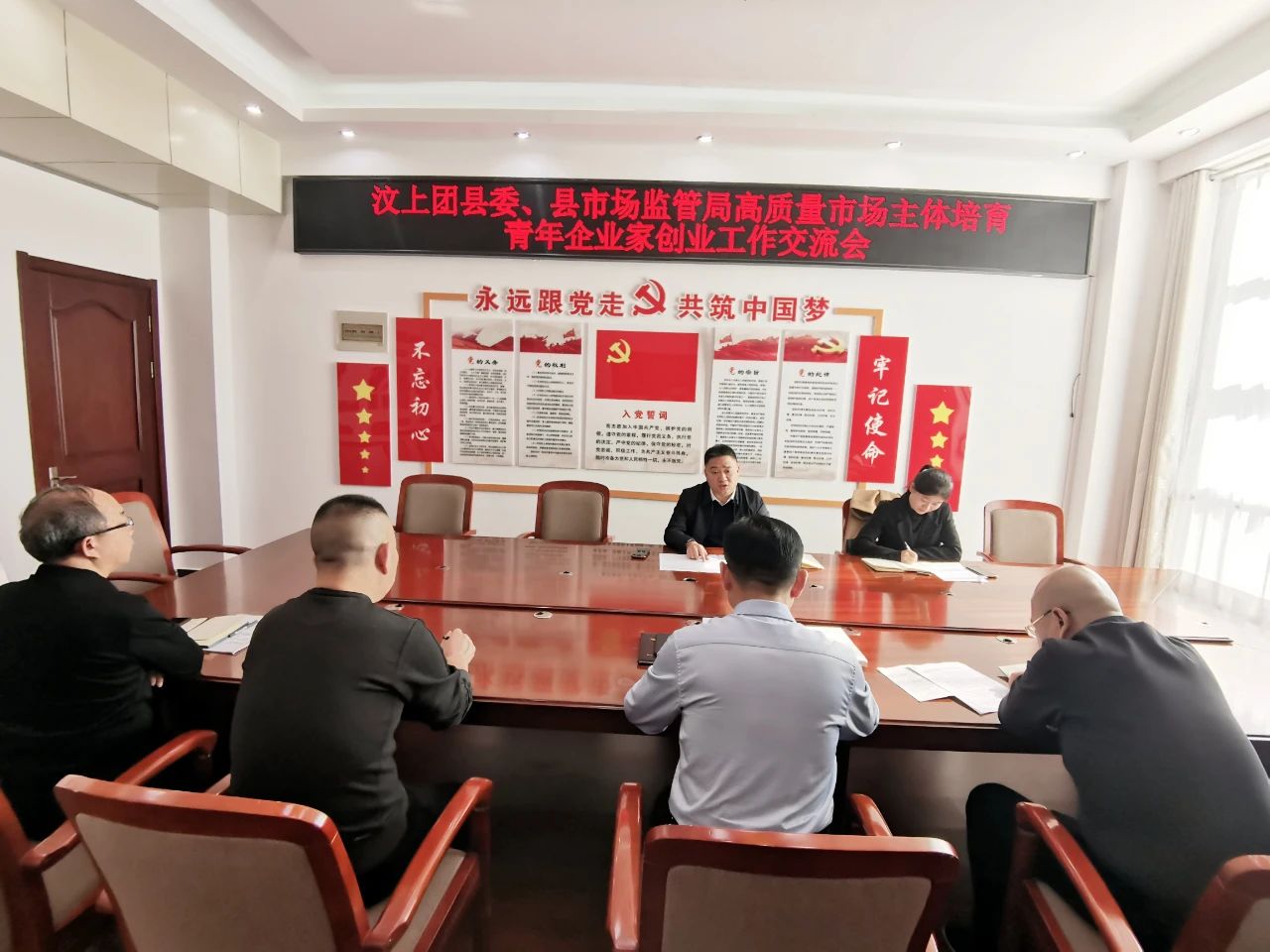 11月21日上午,汶上团县委、县市场监管局召开高质量市场主体培育青年企业家创业工作交流会。县市场监管局党组书记、局长陈圣渠,团县委书记翟志恒,团县委副书记王灿,县市场监管局二级主办王建,登记服务和信用监管科科长王申华,三级主办田延玉等参加座谈。
