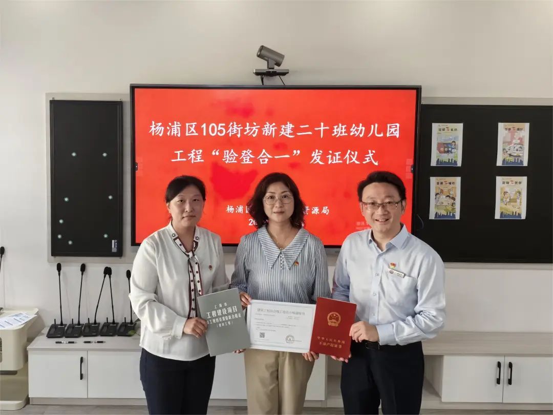 近日,杨浦区规划和自然资源局推出一项创新举措:将竣工验收和办理不动产权证合并进行,实现“验登合一”,为企业和群众提供更加便捷、高效的服务。 9月6日,杨浦区规划和自然资源局同步核发了105街坊新建二十班幼儿园项目竣工规划和自然资源验收合格证和不动产权证,标志着“验登合一”这一创新举措在杨浦区试点成功,打通了竣工规划资源验收到不动产登记的“最后一公里”。